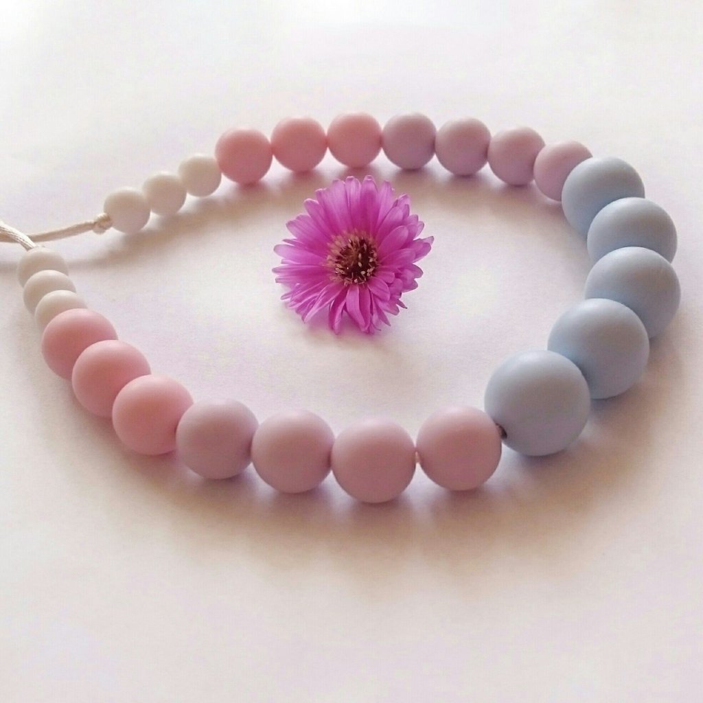 Silikonové kojící kousací korále jsou nejen výborným pomocníkem při prořezávání prvních dětských zoubků, ale i krásně vypadajícím doplňkem pro maminky. Jsou vyrobeny ze zdravotně nezávadného silikonu, jenž je certifikovaný EU. Korále neobsahují BPA, ftaláty, olovo, kadmium ani další těžké kovy. Korále jsou opatřeny bezpečnou plastovou přezkou, která ochrání vaši šíji před odřením. Šnůra korálů je pevná, není možné ji roztrhnout ani překousnout. Náhrdelník je dodáván v praktickém plátěném sáčku.