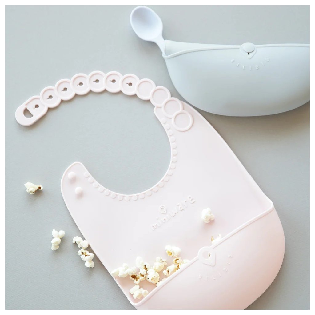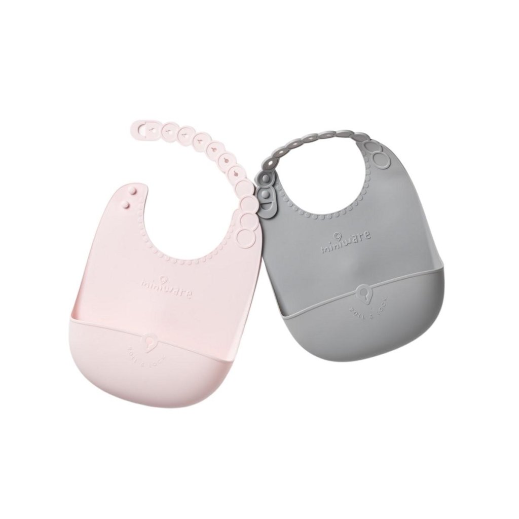 MINIWARE Set silikonových bryndáků Roll & Lock Grey/Cotton Candy