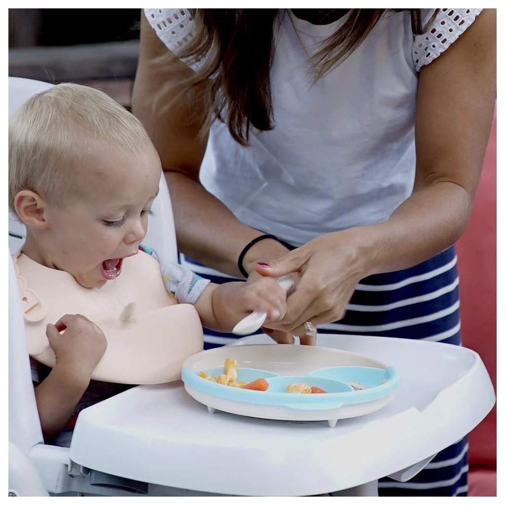 Krásné silikonové bryndáky, které lze jednoduše složit a vzít s sebou na cesty. Bryndáky mají extra hlubokou a širokou kapsu, takže zachytí případné kousky jídla, které vašemu drobečkovi upadnou.