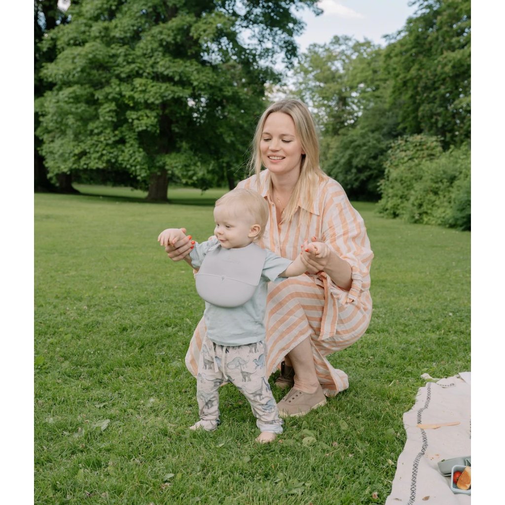 Krásné silikonové bryndáky, které lze jednoduše složit a vzít s sebou na cesty. Bryndáky mají extra hlubokou a širokou kapsu, takže zachytí případné kousky jídla, které vašemu drobečkovi upadnou.