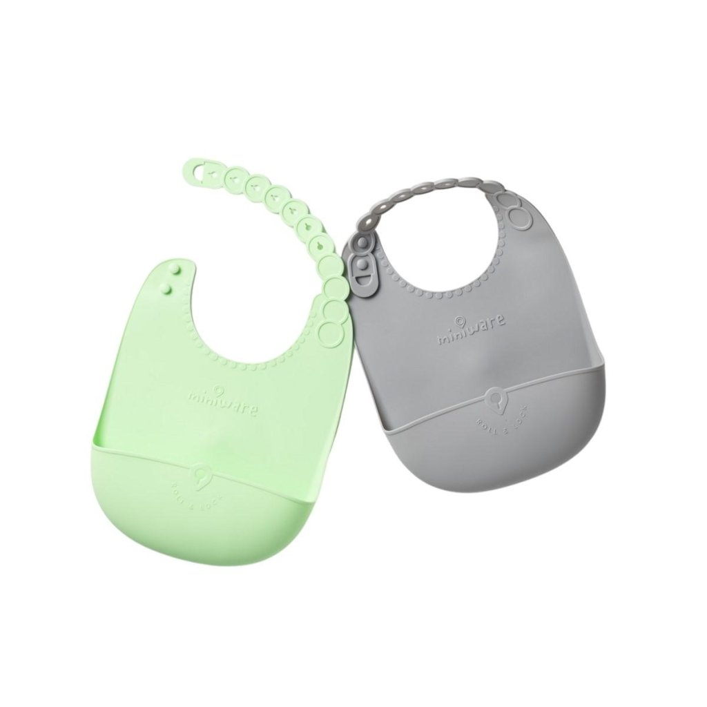 MINIWARE Set silikonových bryndáků Roll & Lock Grey/Key Lime