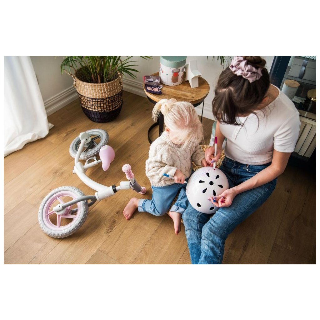Bezpečnost Vašeho dítěte je vždy a za všech okolností prioritou značky MoMi. Je také lehká, prodyšná a má extra pěnové polstrování pro dokonalou ochranu a pohodlí. Helma má vysoce kvalitní skořepinu z ABS a EPS, která Vám poskytne naprosté bezpečí při jízdě. Má až 11 větracích otvorů, které zajišťují správnou cirkulaci vzduchu a dávají Vám jistotu, že se hlava Vašeho dítěte nebude nadměrně potit ani v horkých dnech. Má nejen vysoké ochranné vlastnosti, ale také možnost rozvíjet umělecké schopnosti Vašeho dítěte! Jak je to možné? Každá helma MoMi MIMI se stane jedinečným výtvorem, když ji Vaše dítě ozdobí vlastními kresbami. Může na ni psát pastelkami a fixami. Když ho design omrzí, můžete jej snadno smýt a vytvořit nový! Osvědčí se při jízdě na kole, koloběžce, odrážedle nebo kolečkových bruslích Systém nastavení obvodu hlavy má širokou stupnici od 47 do 58 cm.