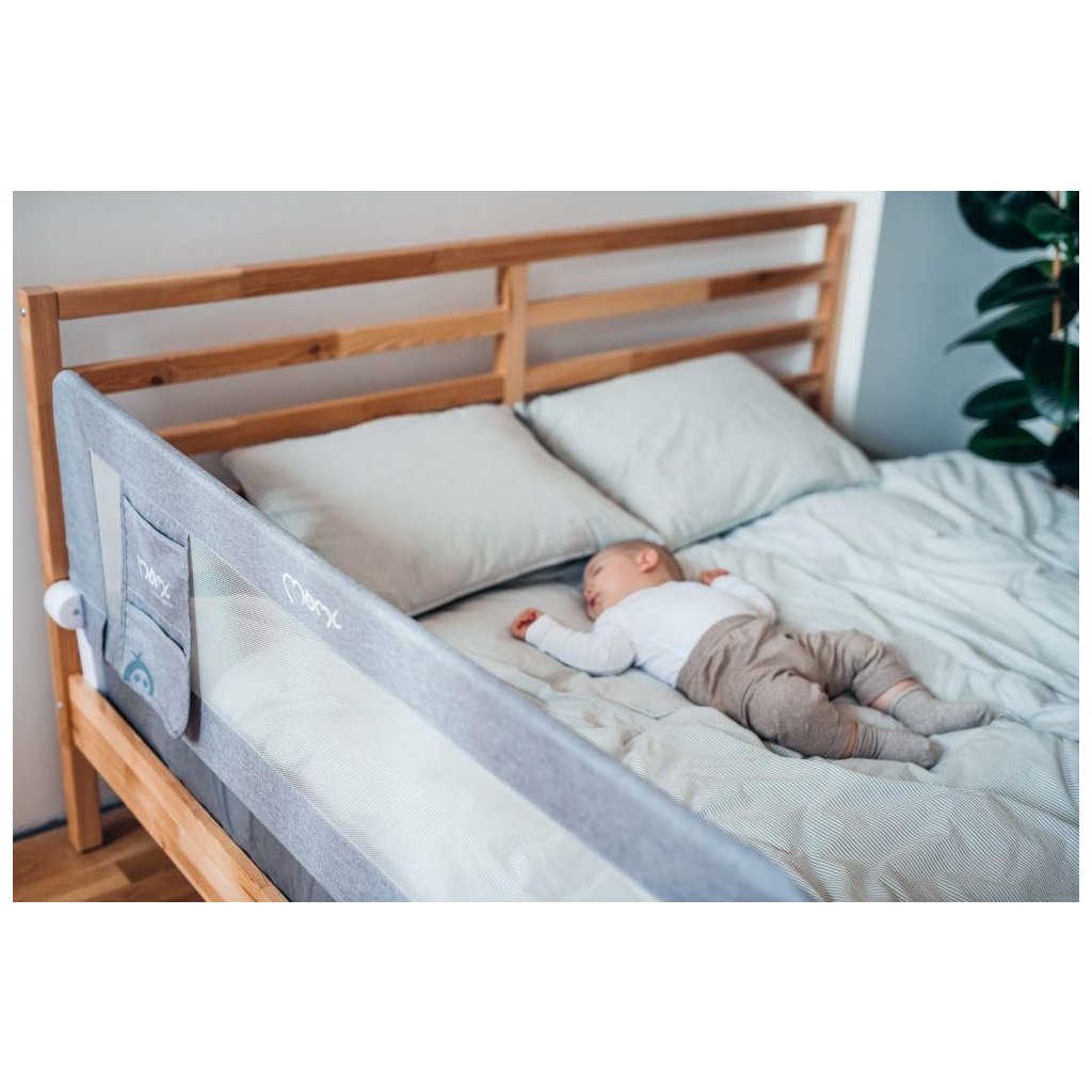 - jednoduchá instalace – zábranu lze přišroubovat ke konstrukci postele nebo umístit pod matraci a upevnit pomocí speciálních popruhů, které jsou součástí sady