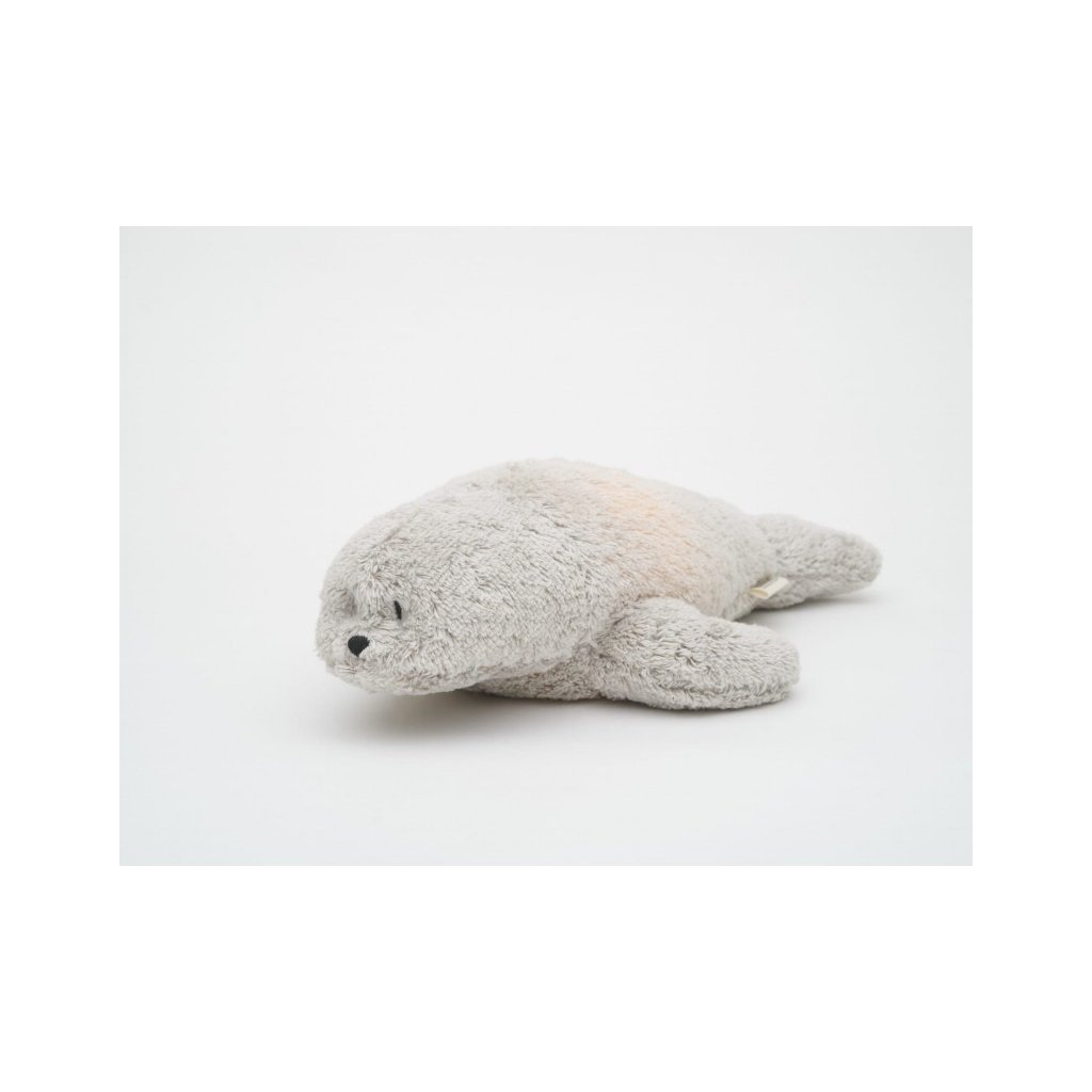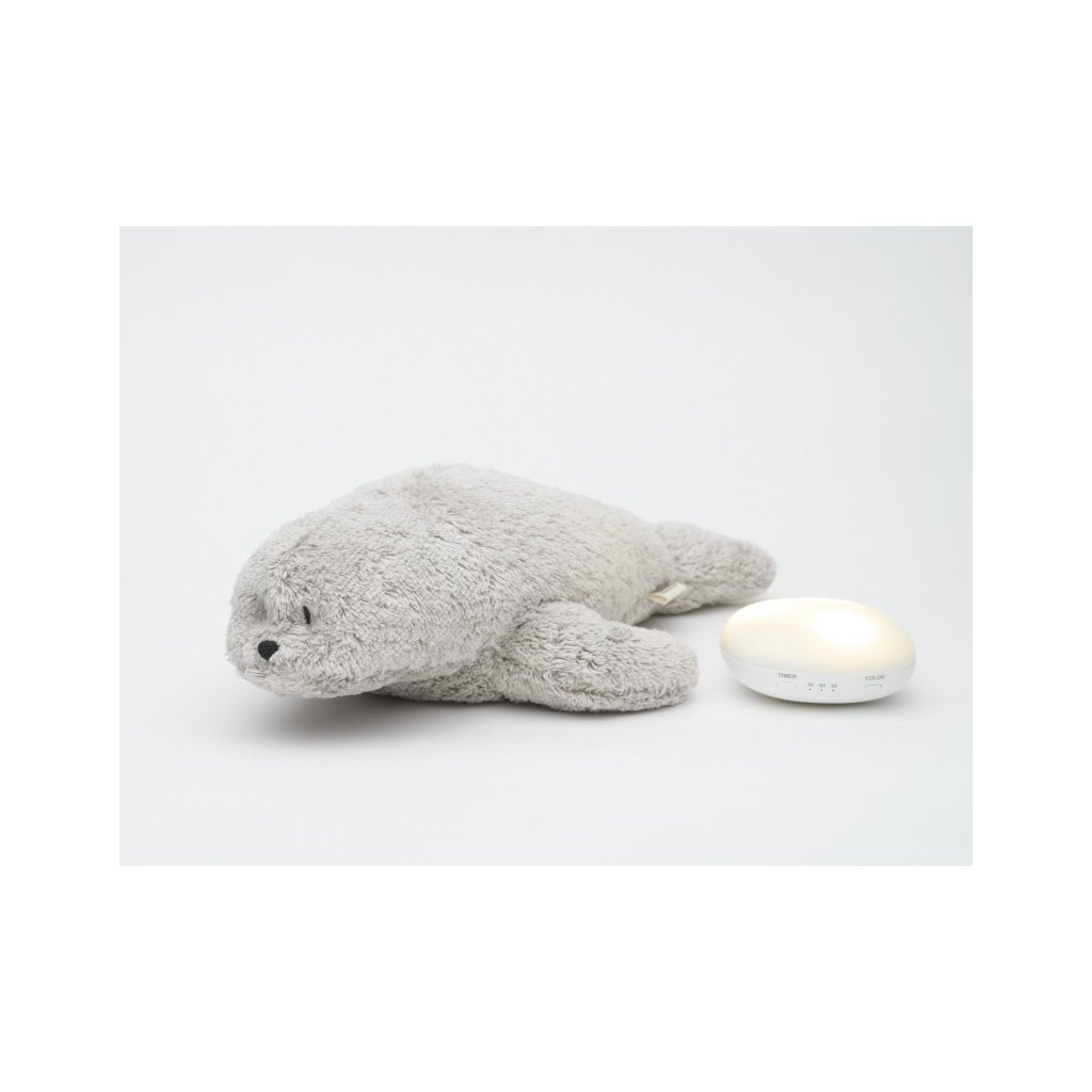 Moonie usínáček v podobě roztomilého tuleně s nočním světlem a relaxačními zvuky pomáhá miminku uklidnit se a snáze usnout. Uklidňující zvuky připomínají dítěti prostředí v děloze maminky před jeho narozením. Usínáček nabízí pět přírodních relaxačních zvuků (tlukot srdce, vítr, lesní potok, mořské vlny, déšť), kalimba ukolébavku, dvě klasické ukolébavky a umožňuje nahrání vlastního hlasu. Bříško tuleně svítí a slouží jako noční světlo s výběrem sedmi barev svícení. Jemné světlo pomáhá dítěti cítit se v postýlce bezpečně. Světlo je možné zapnout i bez zvuků. Při zapnuté funkci Shake světlo zapnete zatřesením hračkou. Tuleň se při svícení nijak nezahřívá a je pro dítě zcela bezpečný. Funkce časovače umožňuje nastavit dobu přehrávání na 30, 60 nebo 90 minut, než modul přejde do režimu inteligentního senzoru pláče. Inteligentní senzor aktivuje zvuk a světlo, když dítě začne plakat. Hračka pak přehrává relaxační zvuky a jemně svítí po dobu 20 minut. Hudební modul umožňuje nastavení hlasitosti a doby přehrávání dle vašich preferencí. Hračka se dobíjí s pomocí USB kabelu, k plnému nabití potřebuje 3 hodiny. Plně nabitá baterie vydrží až 8 hodin nepřetržitého provozu se zapnutým světlem a zvukem. USB kabel je součástí balení. Po vyjmutí zvukového a svítícího modulu můžete hračku prát v ruce. Tuleň je součástí produktové řady Moonie Organic, vyráběné z cetifikované organické bavlny, barvené netoxickými barvami. Bavlna pochází z produkce bez použití pesticidů a toxických hnojiv. Při pěstování organické bavlny se používá o 50% méně vody ve srovnání s průmyslovým pěstováním. Výplň hračky tvoří recyklovaný materiál. Hračka byla testována švýcarskou laboratoří SGS a je v souladu se směrnicí 2009/48/ES o bezpečnosti hraček. Vhodné pro děti od narození.
