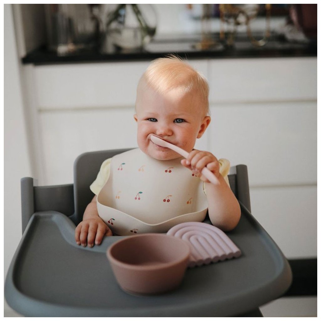 Velikost Mushie silikonové lžičky je přizpůsobena pro první příkrmy, spodní část je ideální pro maličké ústa a díky dlouhé rukojeti lžička dosáhne i na dno hlubších sklenic s dětskou výživou. Měkké silikonové oblé zakončení lžičky chrání dětské dásně i první zoubky.