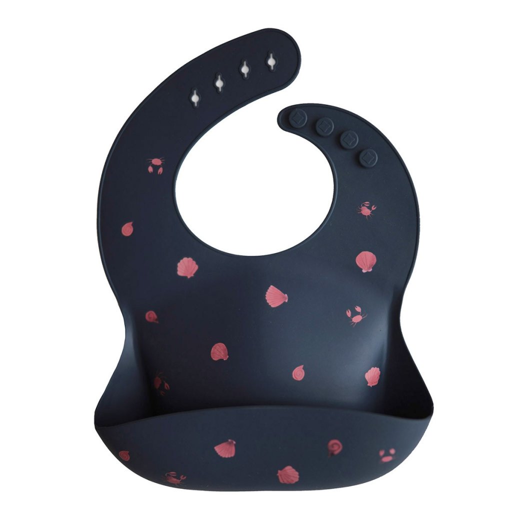 Mushie silikonové bryndáky jsou navrženy tak, aby udržely vaše děťátko při jídle v pohodlí a čistotě. V kombinaci s Mushie dětským obědovým nádobím to bude zážitek a potěšení pro vás i vaše děťátko. Jednoduše stylové a originální krmení. Barva je tmavě modrá s motivem mušlí.
