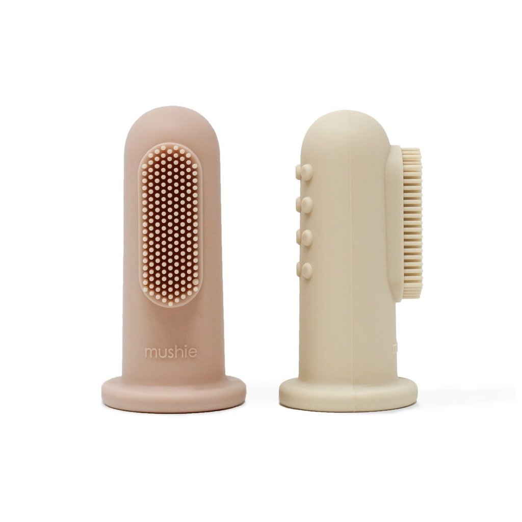 MUSHIE Silikonový zubní kartáček na prst 2ks Shifting Sand Blush