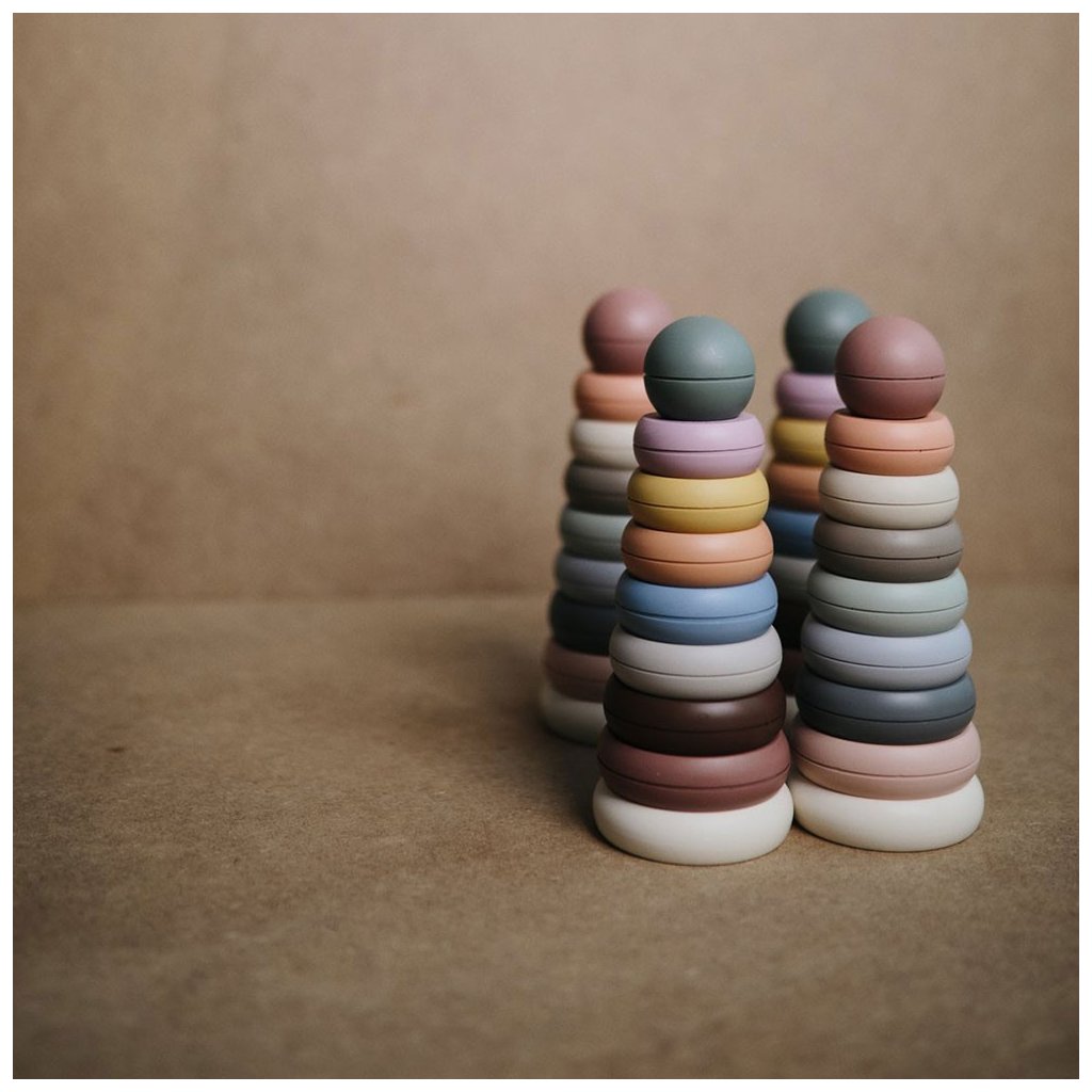 Mushie stohovací kroužky jsou zábavnou a rozvojovou hračkou pro vaše děťátko, která upoutá jeho pozornost. Stohování předmětů dětem pomáhá rozvíjet představivost, prostorové vnímání, koordinaci oko-ruka, logické myšlení, a hlavně jemnou motoriku zábavnou formou. Kroužky jsou lehké a velikostí ideální pro dětské ručky. Originální design a jemné harmonické barvy stohovacích kroužků oživí každý interiér dětského pokojíčku.