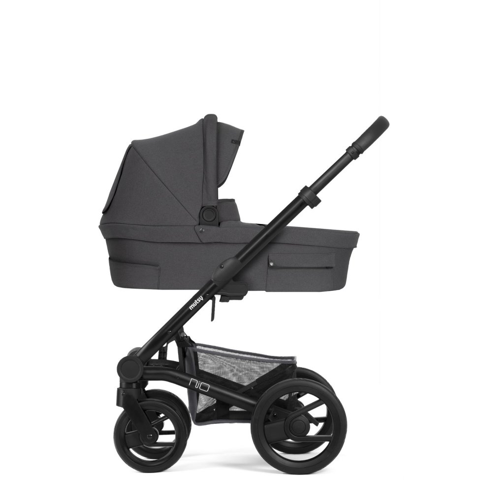 Díky hlubokému lůžku můžete kočárek Mutsy Nio používat již od narození svého dítěte. Korbička je vybavena pohodlnou, ergonomickou matrací a nánožníkem. Ve stříšce se nachází zabudované praktické madlo na přenášení a větrací otvor. Součástí je také několik kapsiček na drobnosti.