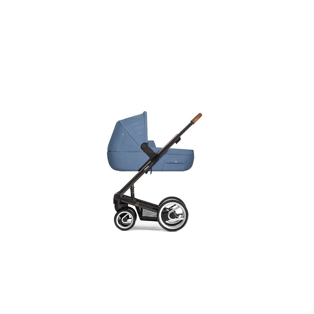 Díky hlubokému lůžku můžete kočárek Mutsy i2 používat již od narození vašeho dítěte. Korbička je vybavena pohodlnou, ergonomickou matrací a nánožníkem. Ve stříšce se nachází zabudované praktické madlo na přenášení potažené tmavě hnědou eko kůží a větrací otvor, který lze vytvořit pomocí zipu a upevnit patentkami. Součastí balení je i moskytiéra.