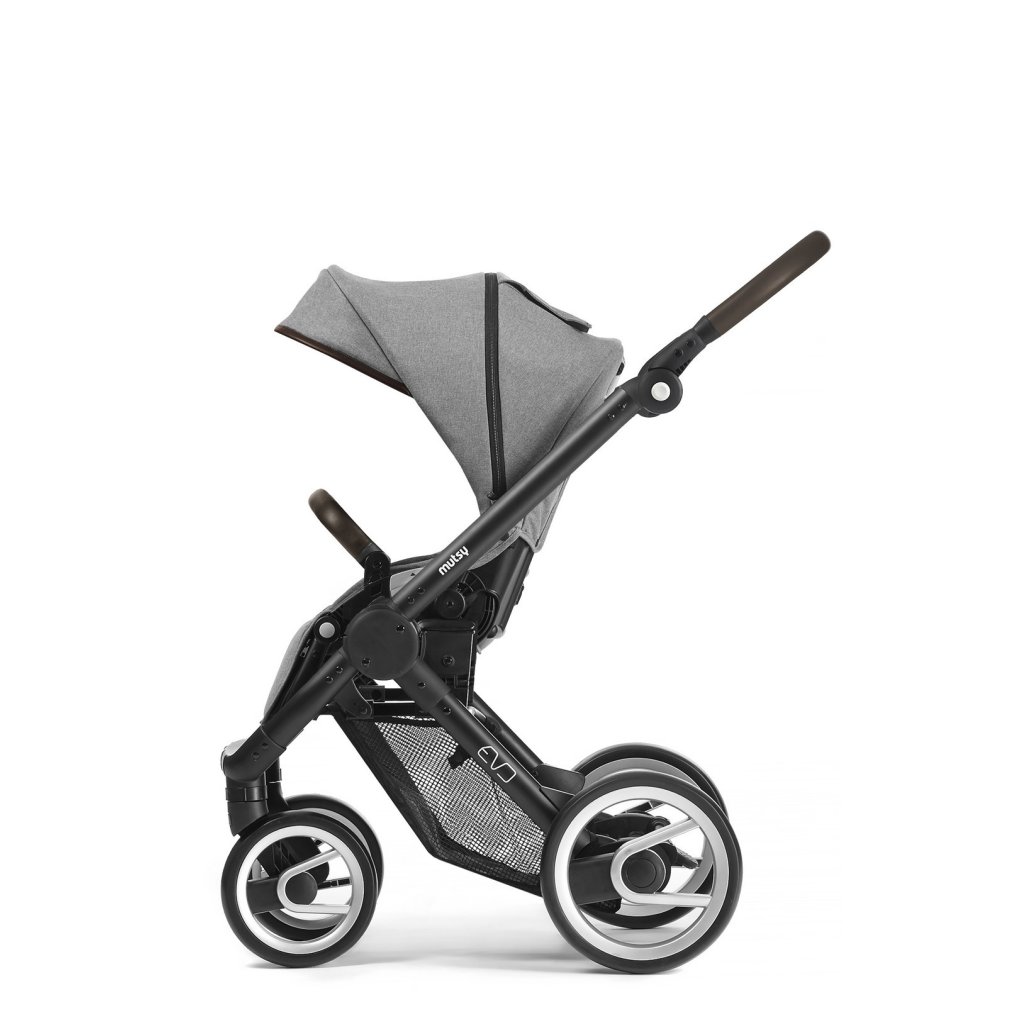 Procházka se kočárkem Mutsy Evo pro vás bude jako procházka po obláčku - maximálně pohodlná pro vás i vaše dítě. Kočárek Mutsy Evo je navíc velmi praktický a uživatelsky přívětivý. Podvozek Evo je velmi lehký a skladný. Kočárek má pěnová kola, u kterých nehrozí píchnutí. Přední kola kočárku jsou otočná s možností jejich aretace, což využijete při procházkách mimo město. Všechna kola jsou odpružená, což zajišťuje pohodlnou jízdu i v náročnějším terénu. Samozřejmostí je výškově nastavitelná rukojeť potažená luxusní eko kůží. Podvozek se velmi snadno skládá, a to i se připevněnou sportovní nástavbou.