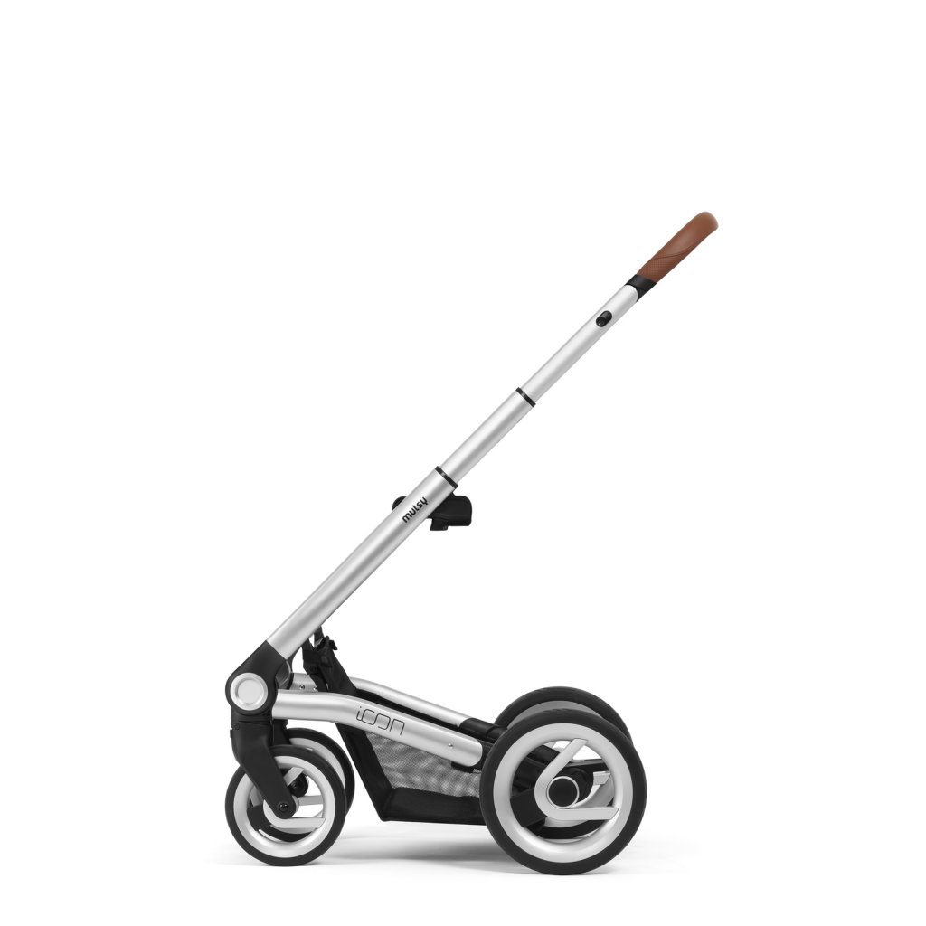 Podvozek Mutsy Icon je stabilní a odolný, ale zároveň velmi lehký a vzdušný. Vyniká zejména svým inovativním systémem skládání - složený zabere minimum místa obdobně jako golfové kočárky, takže se snadno přenáší nebo ukládá například do kufru auta. Další jeho výhodou je možnost složení kočárku včetně nasazené sportovní nástavby. Pro ještě větší skladnost můžete snadno a rychle odejmout všechna kolečka. Mutsy Icon má výborně odpružený podvozek a přední kola, což poskytne vašemu děťátku ještě větší komfort. Kola jsou vyrobena ze směsi pěny a gumy a mají extra dezén pro větší přilnavost a komfortnější jízdu. Mutsy Icon má také teleskopicky nastavitelnou rukojeť, která se přizpůsobí rodičům všech výšek. Součástí podvozku je velkorysý a skvěle přístupný nákupní košík.