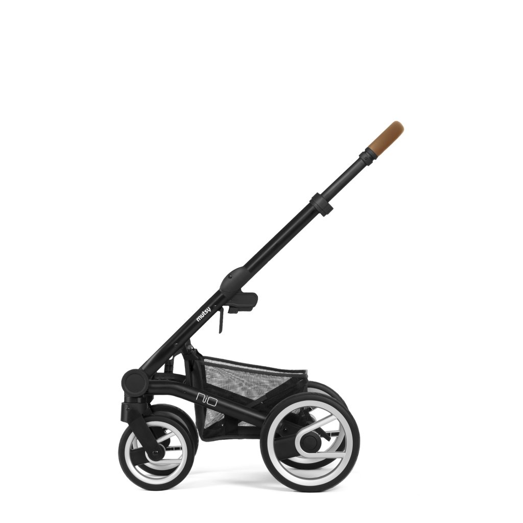 Mutsy Nio kombinuje výhody kočárku Mutsy i2 a Evo, což dává za vznik stylovému a pohodlnému kočárku se skvělými jízdními vlastnostmi. Díky sklopnému zámku zůstane složený i během přepravy. Kočárek má lehká, ale robustní pěnová kola, u kterých nehrozí píchnutí. Přední kola kočárku jsou otočná s možností jejich aretace, což využijete při procházkách mimo město. Přední kola mají unikátní zavěšení, díky kterému poskytují dítěti dodatečný komfort zejména na nerovném povrchu. Toto zavěšení také výrazně usnadňuje manévrování s kočárkem. Samozřejmostí je nákupní koš a výškově nastavitelná rukojeť potažená luxusní eko kůží. Další výhodou je výše umístěné hluboké lůžko, které uleví vašim zádům při manipulaci s miminkem. Centrální kloub podvozku byl vyvinut a vyroben s mimořádným důrazem na bezpečí dětí. Podvozek se velmi snadno skládá, a to i se připevněnou sportovní nástavbou.