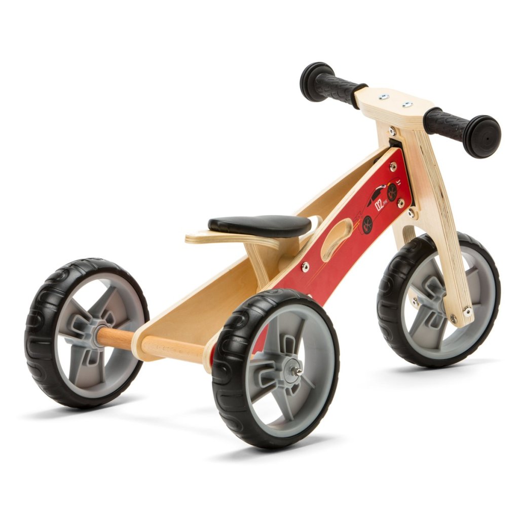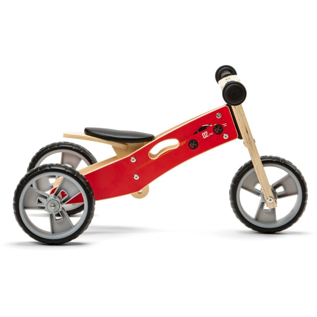 Dřevěné miniodrážedlo 2v1 je ideální způsob, jak naučit děti základům rovnováhy. Toto odrážedlo je navrženo pro velmi malé děti. Je menší než klasická dětská odrážedla. Hlavní jeho předností je to, že jej lze přestavět na tříkolku. Doporučujeme nejdříve dítě učit jezdit na tříkolce. Když již zvládá jízdu na tříkolce a seznámí se s ovládáním a základy řízení, můžete tříkolku přestavět na klasické odrážedlo s dvěma koly. Praktická gumová kolečka umožňují výborné jízdní vlastnosti na kterémkoliv povrchu.