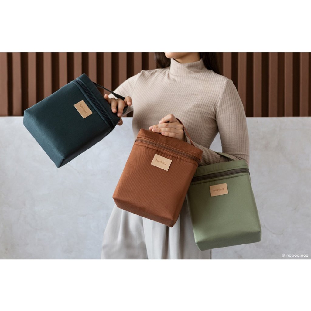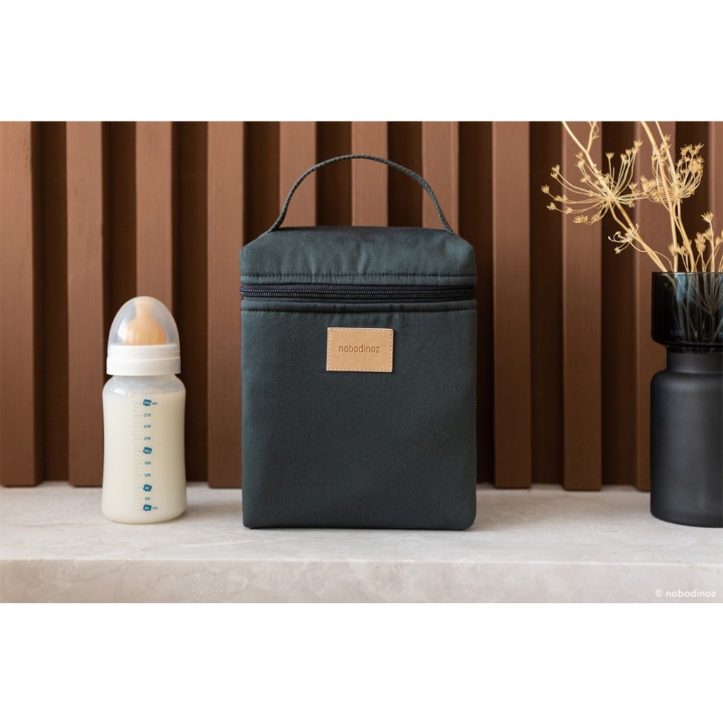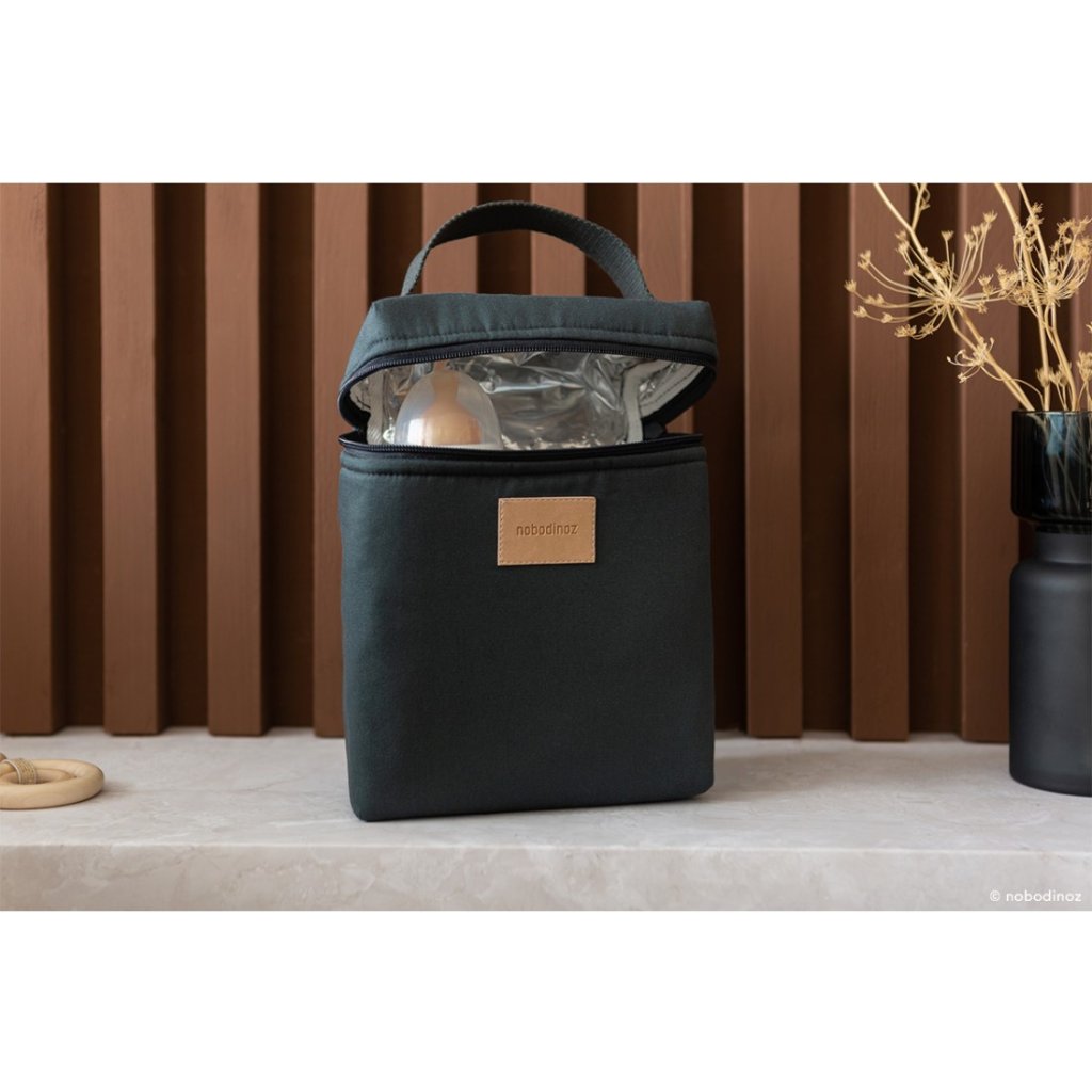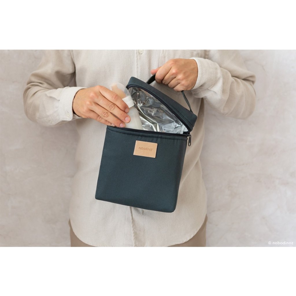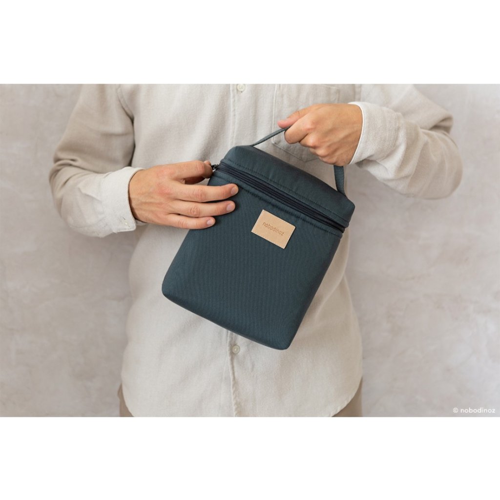 Tato voděodolná a zateplená taška vám umožní přenášet dětské lahve, kojenecké lahve nebo svačiny a zároveň udržovat jejich teplotu (teplé i studené). Má kapacitu pro dvě lahve a malé sklenice. S řadou Baby on the go představuje Nobodinoz inovativní látku, naprosto voděodolnou organickou bavlnu s přírodním aspektem, skutečnou novou technickou výzvu. Nechte se zlákat jejími uhlazenými liniemi a neutrálními barvami pro všechny, tatínka i maminku.