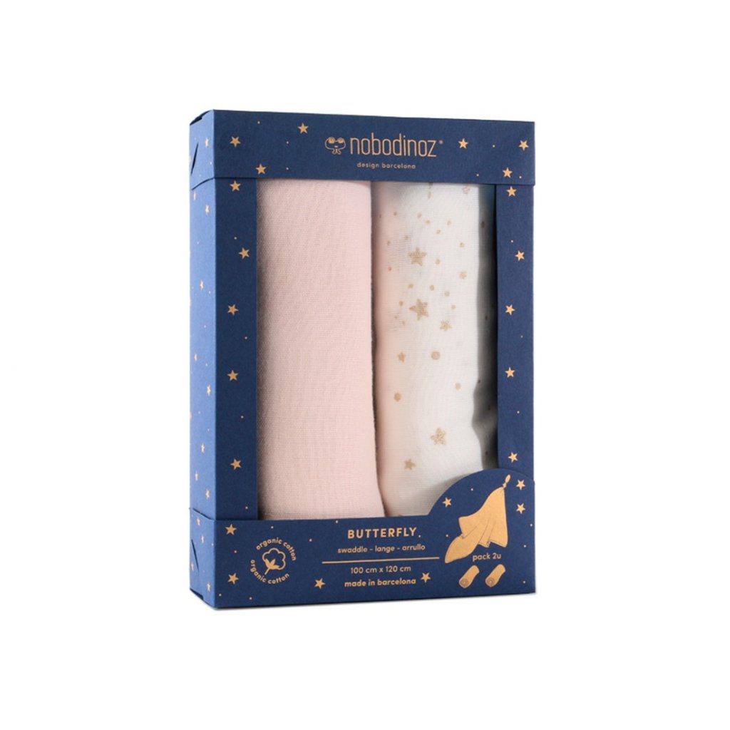 NOBODINOZ Butterfly Swaddle 100 x 120 cm 2 ks Pack Pink