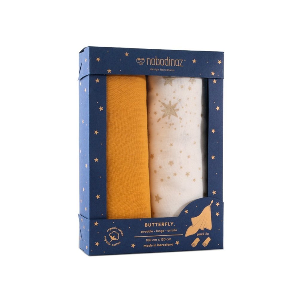 NOBODINOZ Butterfly Swaddle 100 x 120 cm 2 ks Pack Yellow