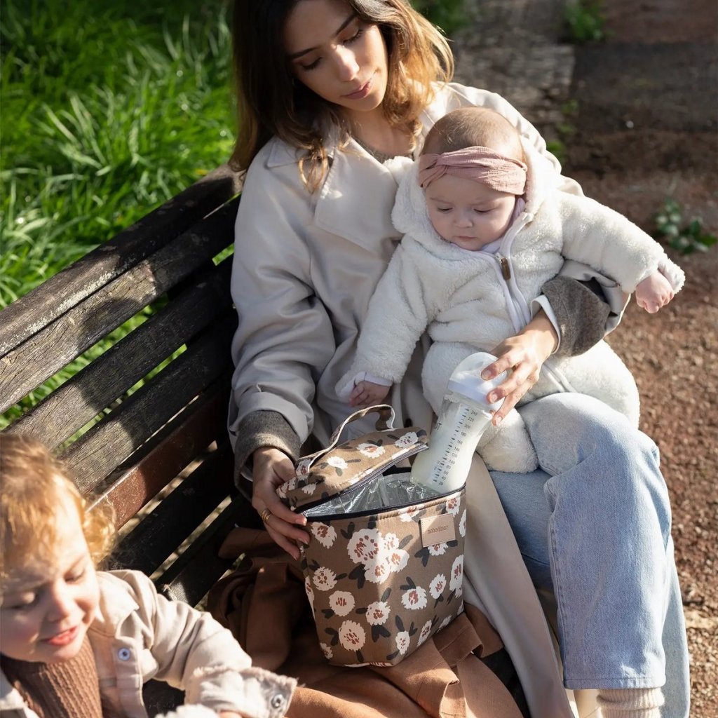 Tato voděodolná a zateplená taška vám umožní přenášet dětské lahve, kojenecké lahve nebo svačiny a zároveň udržovat jejich teplotu (teplé i studené). Má kapacitu pro dvě lahve a malé sklenice.
