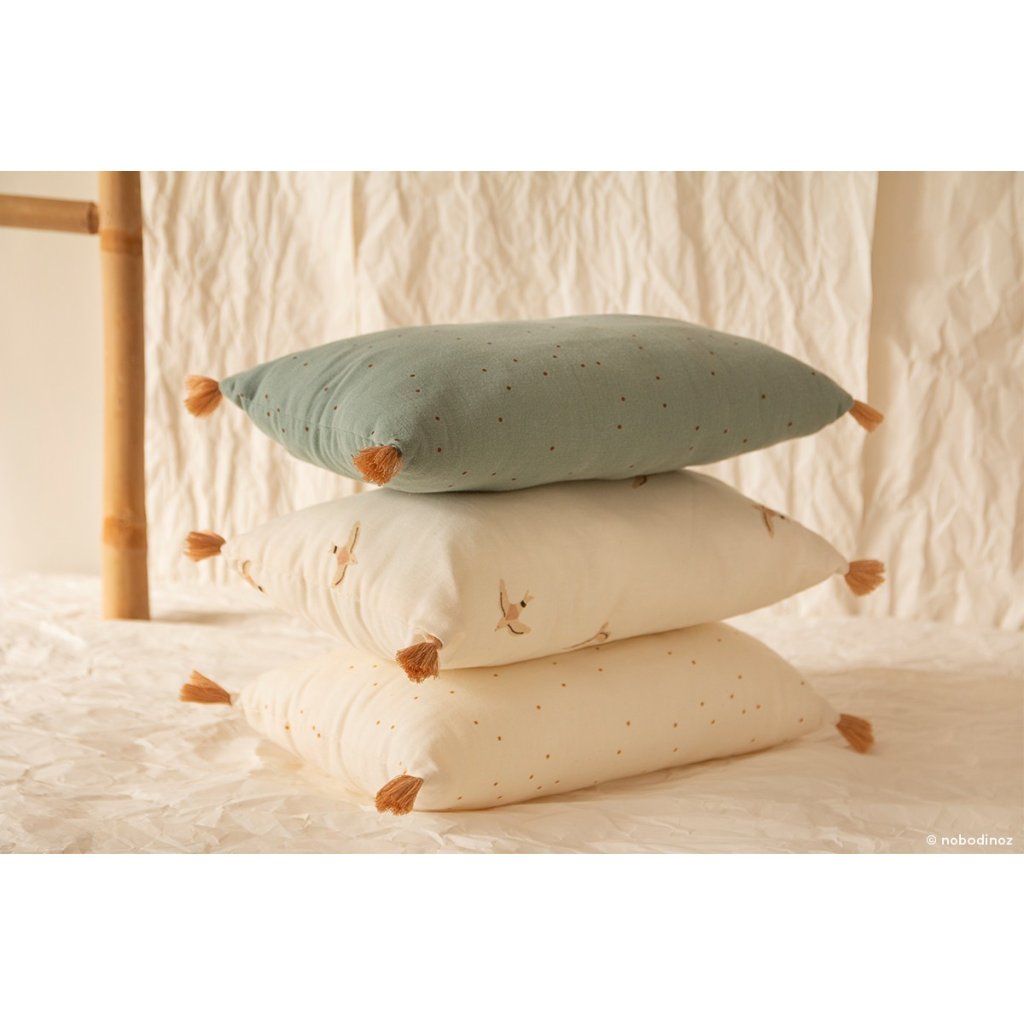 Dodejte dětskému pokoji nebo jiné místnosti vašeho domova dotek sofistikovanosti díky tomuto elegantnímu polštářku z organické bavlny.