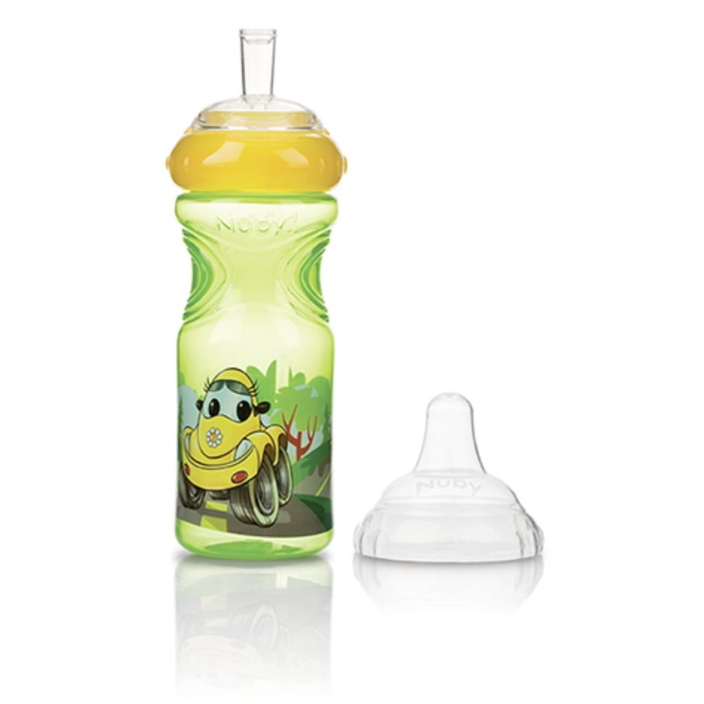 NUBY Láhev sportovní netekoucí s měkkým náustkem Wheelz zelená 300ml 9m+