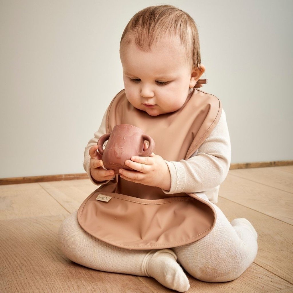 Bryndáček udržuje dítě čisté a suché po celou dobu jídla. Bryndák má speciální kapsu, která zachytí zbytky padajícího jídla. Díky recyklovanému polyesteru se bryndák snadno čistí, takže je ihned připravený na další jídlo.