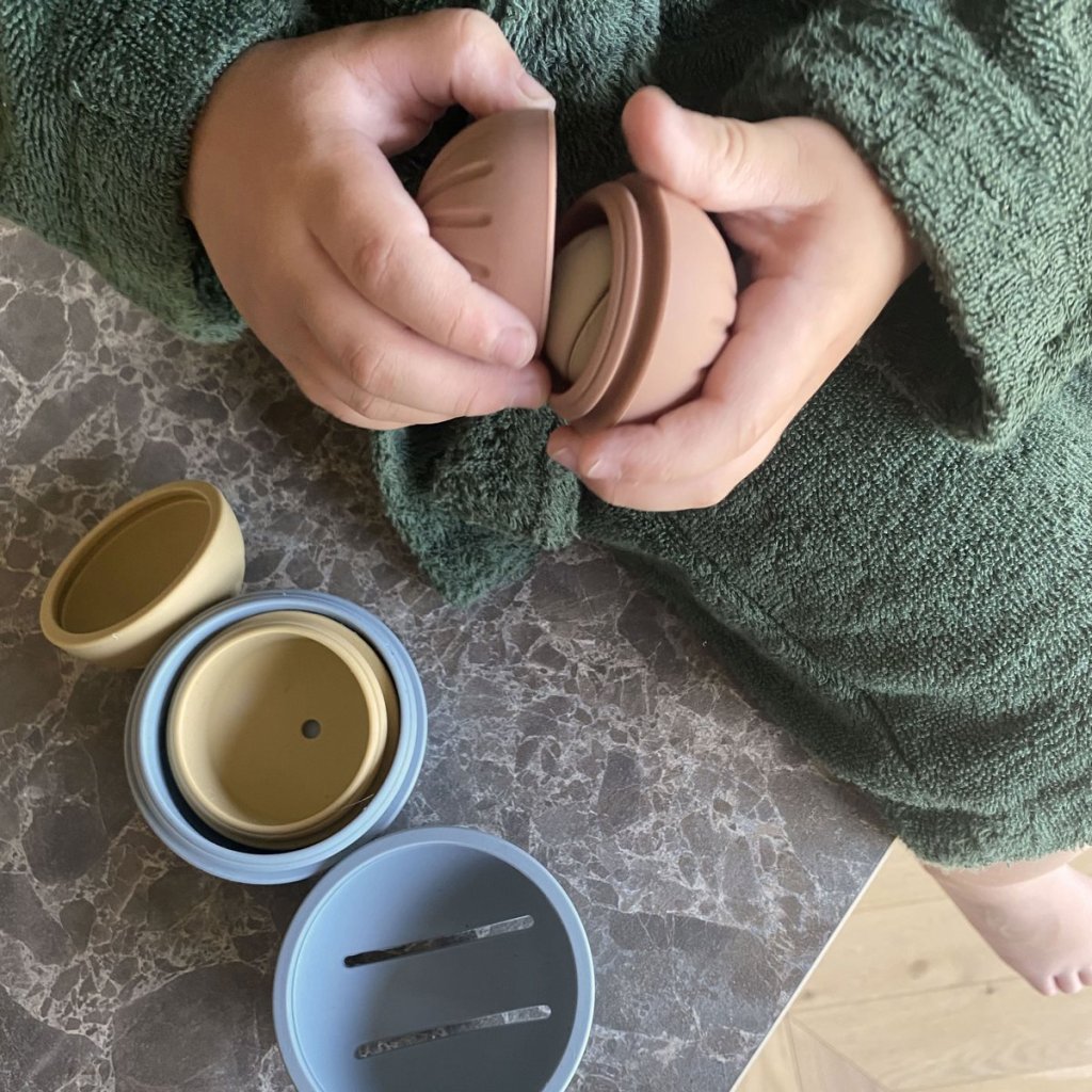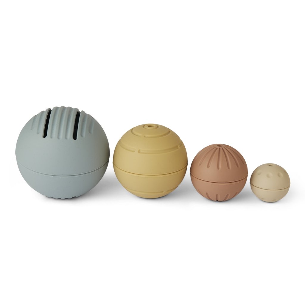 Sada obsahuje 4 silikonové míčky v různých velikostech. Míčky lze do sebe vkládat a vytvořit tak jeden veliký. Díky otvorům hračky využijete nejen doma, ale poslouží i jako skvělá zábava při koupání.
