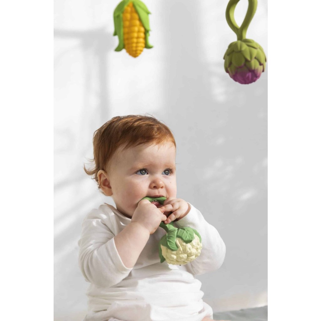 Nový revoluční koncept! Chrastítko a kousátko v jednom ve tvaru květáku od Oli&Carol je nejzelenější hračka na trhu! Jeho povrch je vyroben ze 100% přírodního kaučuku a uvnitř jsou upcyklována třešňová semínka, která promění toto kousátko na chrastítko. 2 v 1! Toto chrastítko bylo navrženo ve spolupráci s certifikovanými otorinolaryngology , se kterými Oli&Carol dokázaly vytvořit perfektní zvukovou výšku, která pomůže miminkům spíše se uklidnit, než je nadměrně stimulovat! Povrch je tvořen neuvěřitelnými texturami a detaily , které pomohou stimulovat smysly miminka při jejich žvýkání! Toto kousátko a hračka do koupele je 100% bezpečná pro miminka, splňuje předpisy: Evropská EN71 část 1,2,3 a 12 a Americká ASTM F963-17 a CPSIA.