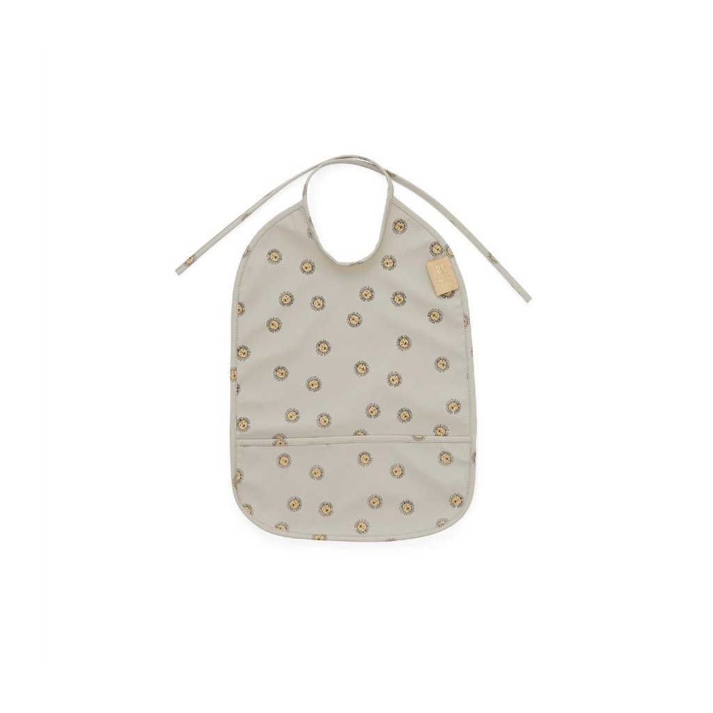 Bryndák s jemným zvířecím motivem. Bryndák má speciální kapsu, která zajišťuje, že přebytečné jídlo nebude stékat po oděvu. Je na zavazování kolem krku.