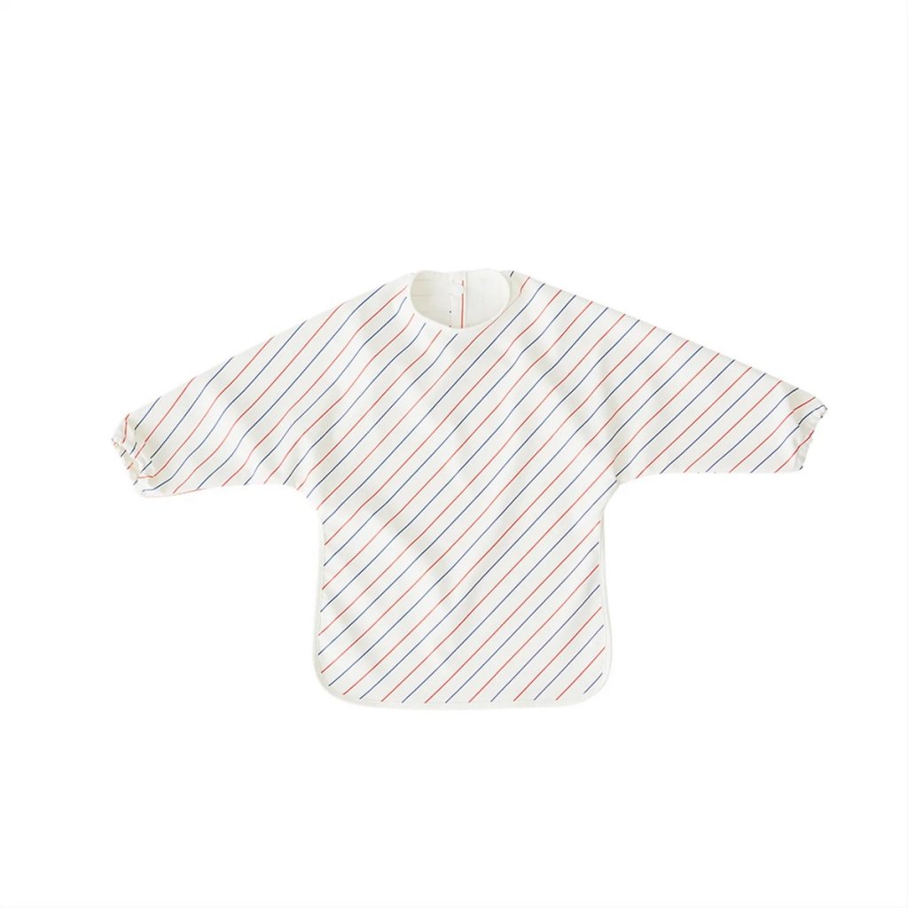 Bryndák s jemným proužkovaným motivem s dlouhými rukávy. Bryndák je možný použít nejen u jídla, ale i při různých výtvarných činnostech, aby si Vaše děťátko neznečistilo oblečení. Je vyroben z praktického recyklovaného polyesteru, který se snadno čistí ručně nebo šetrným praním v pračce na 30°.