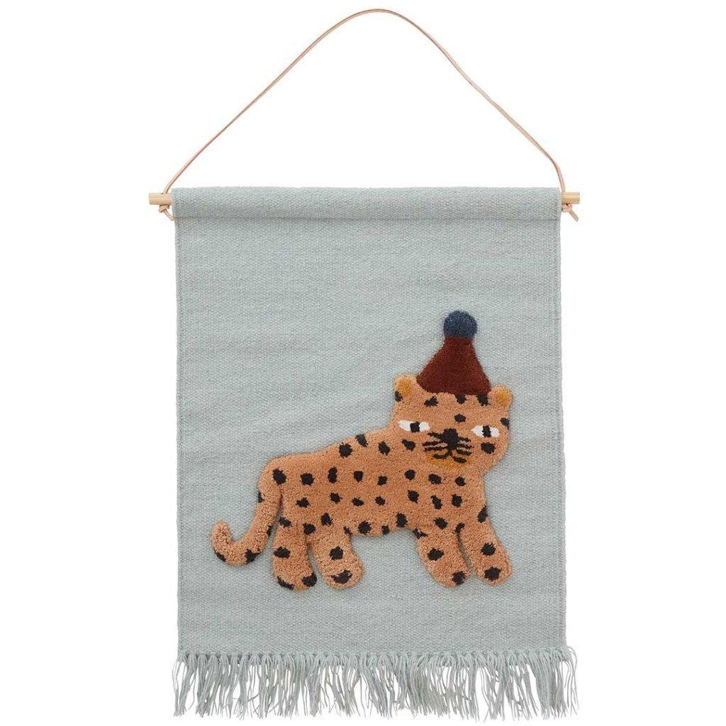 Nástěnný koberec s leopardem bude hitem ve všech dětských pokojích. Dekorativní koberec je vhodný k zavěšení samostatně nebo k jiným kobercům z této série. Ručně vyrobený nástěnný koberec je vyroben z vlny a bavlny s jemnými detaily, které si dítě zamiluje. Součástí balení je dřevěná hůl a šňůrka na zavěšení.