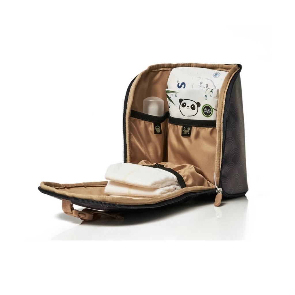 Jednoduchý a velmi lehký přebalovací organizér s klipem, díky kterému jej snadno zavěsíte na madlo kočárku. Pokud přebalovací organizér zrovna nepotřebujete, lze jej složit tak, aby zabíral minimum místa. Uvnitř organizéru jsou kapsy na plínky, čistící ubrousky a další potřeby.