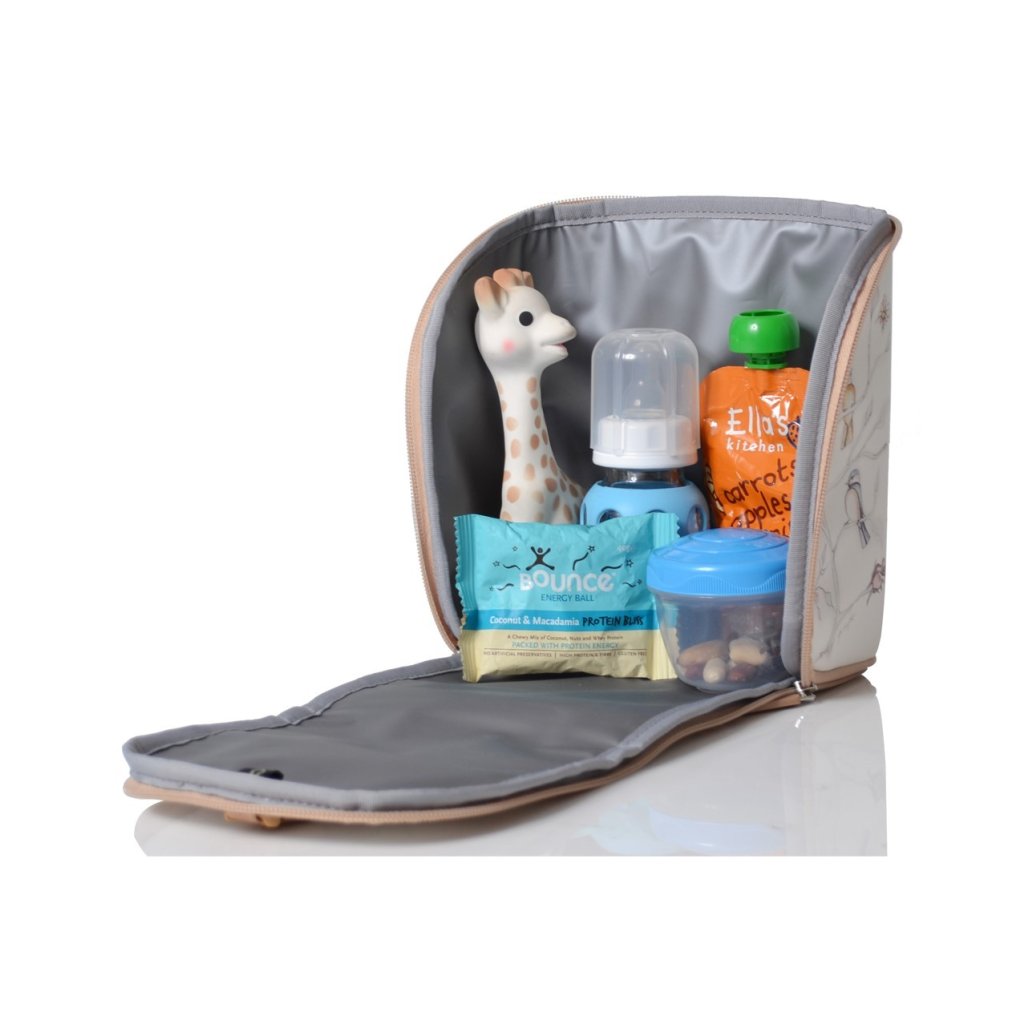 Termoobal na svačinu i na pití. V horní části je klip pro snadné připnutí na madlo kočárku. Díky systémů zipů lze tento termoobal rozložit tak, aby v tašce nezabíral žádné místo. Do termoobalu se vejdou až 4 kojenecké láhve. Ve standartních podmínkách udrží nápoje v požadované teplotě až 3 hodiny.
