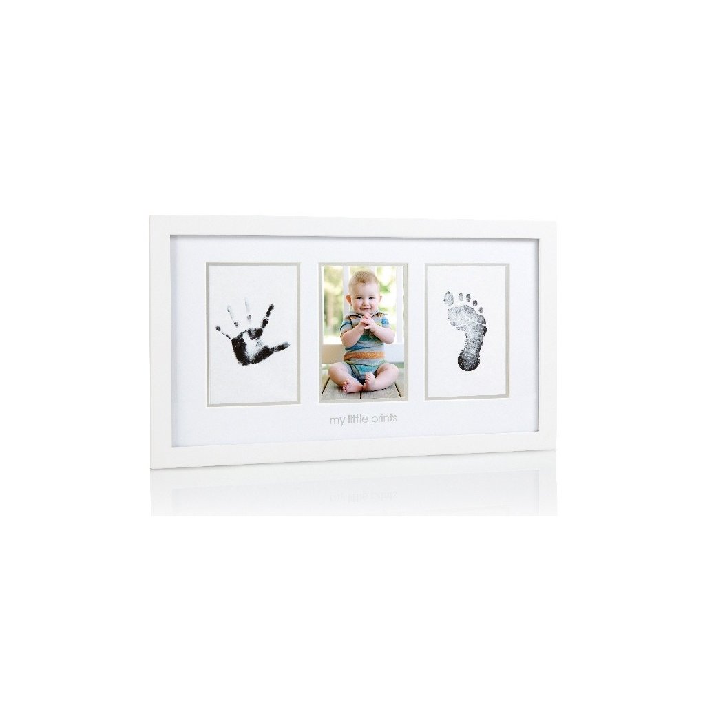 Tento elegantní dřevěný rámeček je určen pro fotografii dítěte a jeho otisky ručičky a nožičky. Součástí rámečku je unikátní bezdotyková sada pro vytvoření otisku. Díky ní je otiskávání rychlé, zdravotně nezávadné a jeho výsledkem je věrný otisk. Vytvoření otisku je prováděno přes speciální blánu, trvá pár sekund a nožička při tom zůstává zcela čistá a suchá. Pokud se otisk nepodaří, lze celý postup opakovat znovu na novou kartičku.