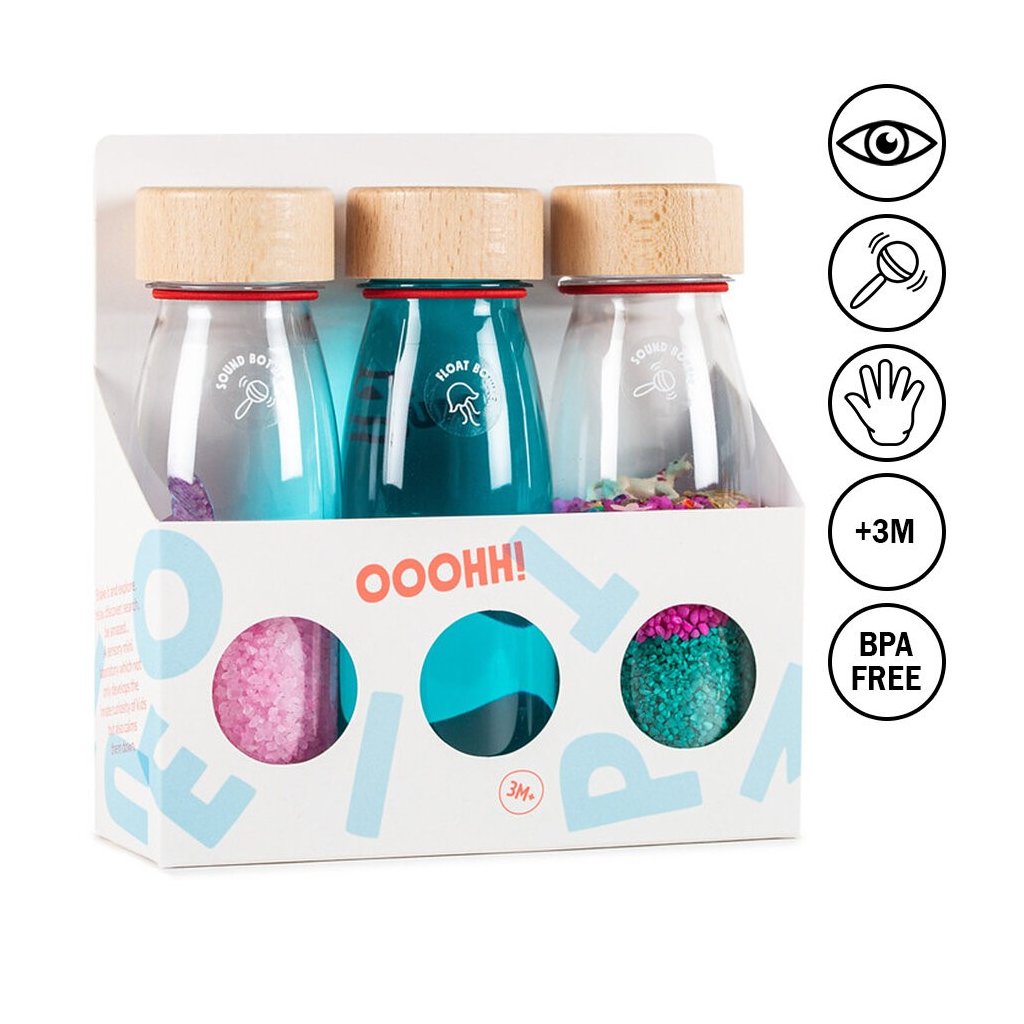 Každý jsme se narodili s nezralým smyslovým a kognitivním systémem, který má obrovský potenciál. Senzorické lahve PETIT BOUM jsou vhodnou hračkou pro přirozenou stimulaci sluchu, zraku a hmatu a přispívá tak ke správnému psychomotorickému vývoji dětí.