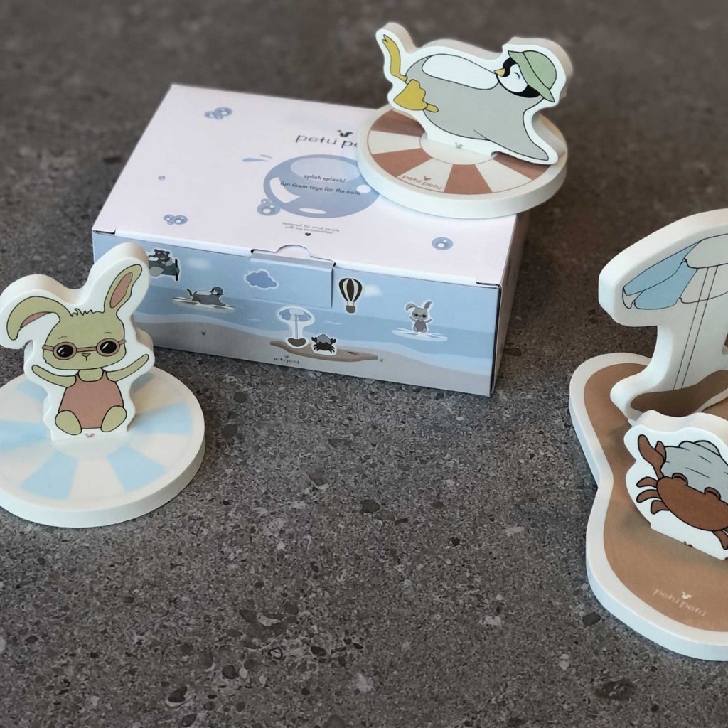 Roztomilé pěnové hračky do vody, vyrobené z EVA pěny. Hračky plavou na hladině a lze je jednoduše přilepit na vanu nebo dlaždice. Některé dílky lze vzájemně kombinovat a vkládat do sebe. Po použití hračky pečlivě osušte.
