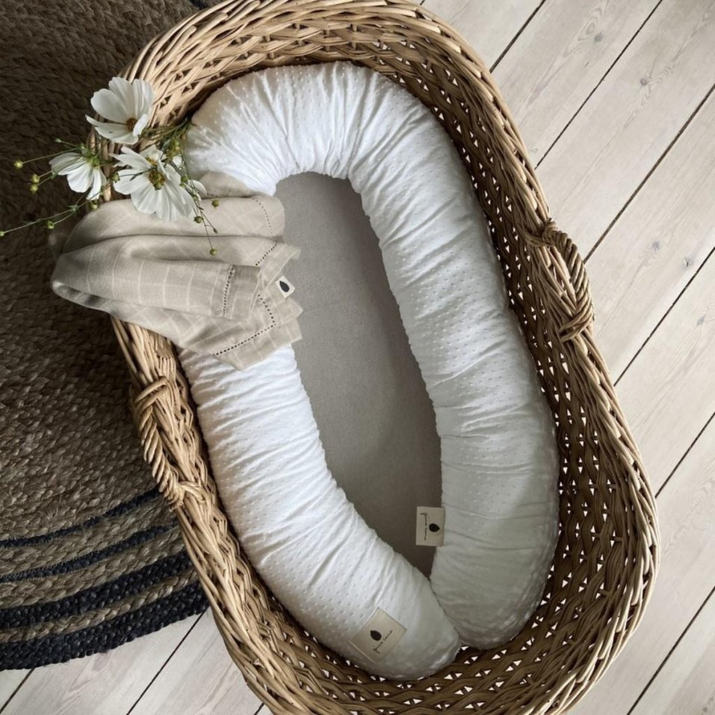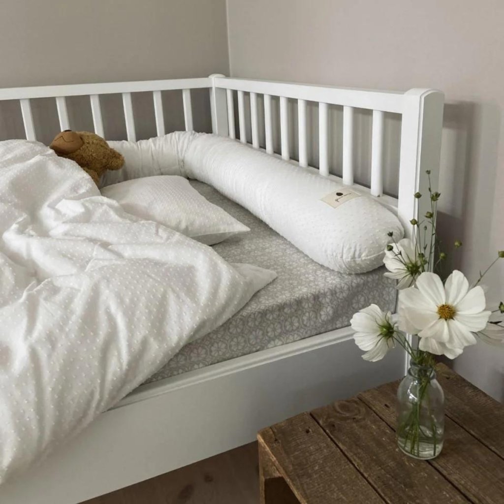 S jemným multifunkčním válcem můžete své miminko ochránit proti průvanu, zároveň zabezpečit postel proti pádu a poskytnout mu bezpečí a pohodlí. Lze jej použít jak v kolébce, tak v dětské postýlce i v běžné posteli. Válec byl navržen s krátkou šňůrkou na každém konci, kterou lze zavázat, tudíž ho můžete použít i jako hnízdo pro miminko. Válec také můžete použít jako kojící polštář nebo jako polštář na spaní pro sebe v průběhu těhotenství. Multifukční polštář můžete prát v pračce při 30 stupních, sušení v sušičče nedoporučujeme. Žehlení je také možné, ale pouze na nízkou teplotu. Vyhněte se bělení. Polštář splňuje všechny bezpečnostní požadavky dánské/evropské legislativy.