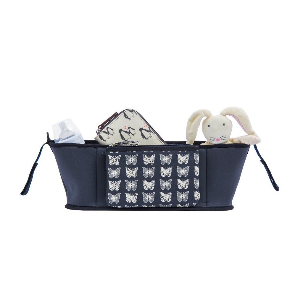 PINK LINING organizér Stroller Organiser krémoví motýlci na modrém pod