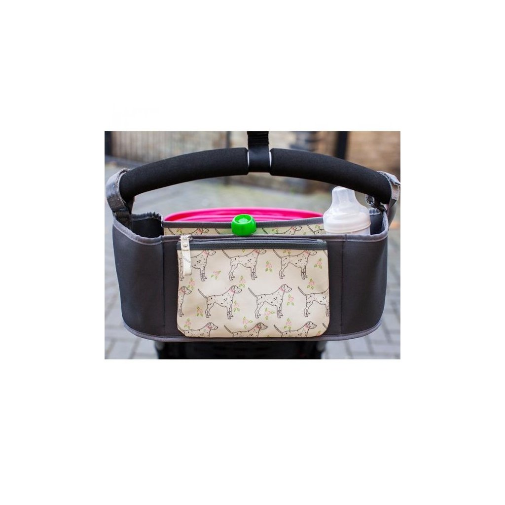 Organizéry na kočárek značky Pink Lining jsou typické nejen pro své veselé, neotřelé motivy, ale především pro svoji praktičnost. Tento je vyroben z odolného neoprenu a obsahuje dvě přihrádky na lahve a odnímatelnou taštičku na zip. Díky němu budete mít vše přehledně uspořádané a vždy po ruce. Rozměry organizéru jsou 37 x 9 x 14 cm (délka x šířka x výška).