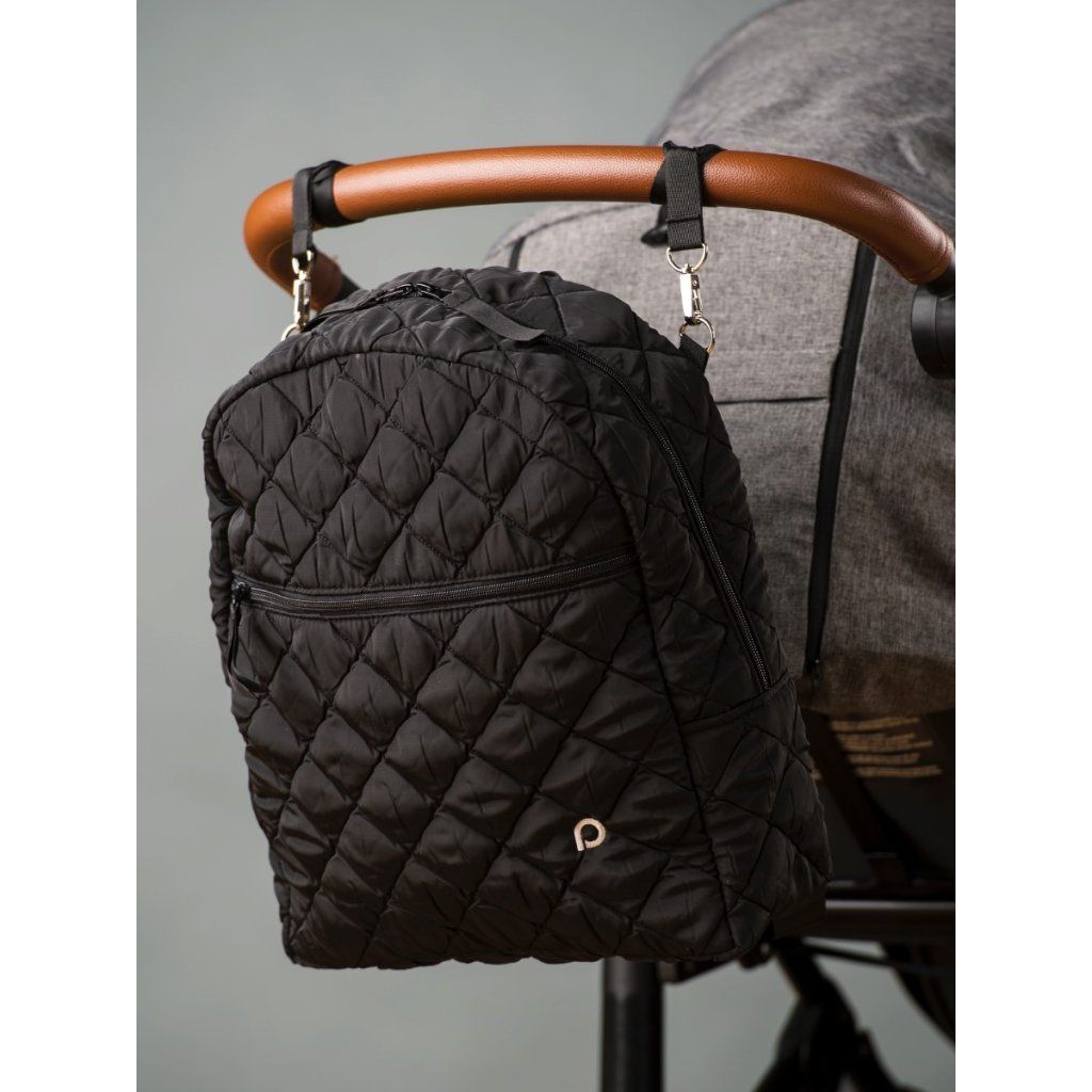 Batůžek, který můžete upevnit i na kočárek. Je polstrovaný, má vnitřní podšívku. Je vybavený 3 vnitřními kapsami (2 síťované) a navíc poutky na uchycení 2 lahviček. Vnější kapsa je uzavíratelná na zip. Součástí jsou nastavitelné popruhy a poutka na suchý zip s karabinkami pro snadné přichycení na madlo kočárku.