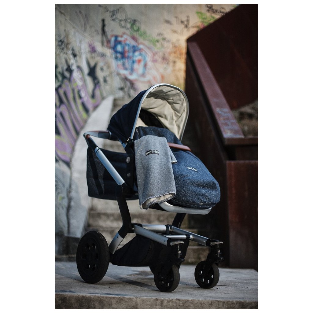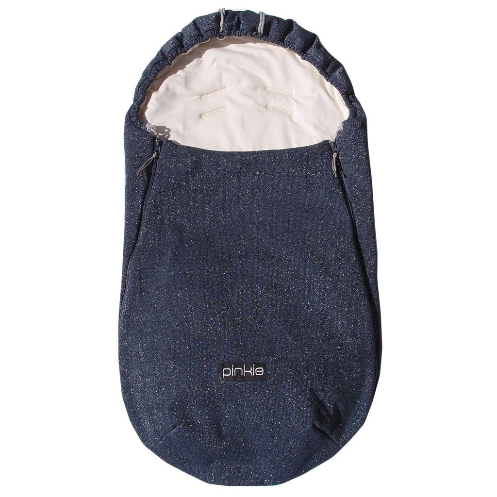 Moderní fusak Pinkie vhodný pro přechodová období. Má atraktivní, třpytivý efekt. Vnitřní část fusaku je vyrobena z antialergické BIO bavlny, vrchní materiál je příjemný, silný úplet s třpytivým efektem. Spodní část je od vrchní zcela oddělitelná, takže jí můžete využít i samostatně jako vložku do kočárku. Fusak má stahování okolo hlavičky a připevnit ho můžete ke kočárku šňůrkami, díky kterým nebude sjíždět. Jeho rozměry jsou cca 108 x 52 cm (délka x šířka). Fusak má tmavě modrou barvu.