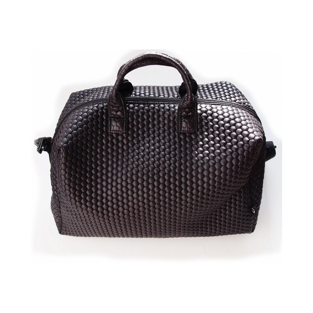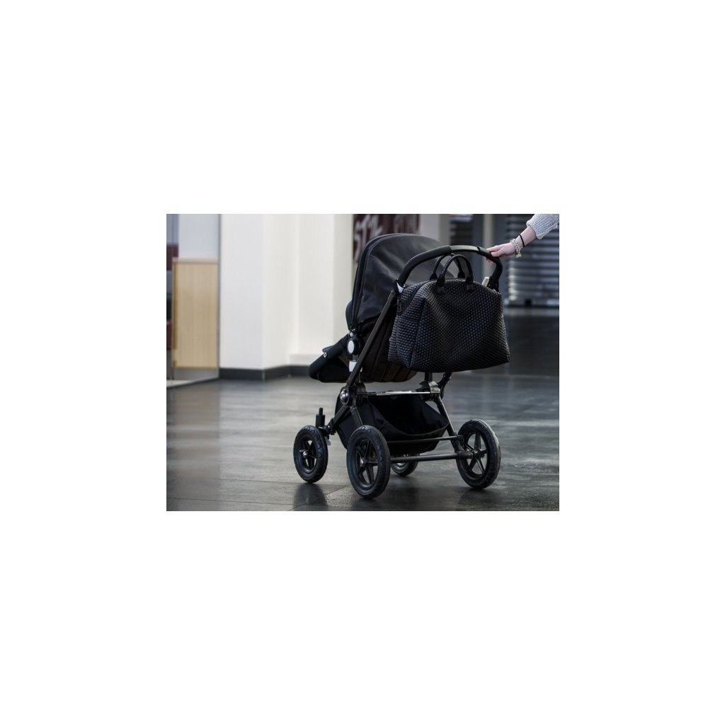Velmi objemná taška na kočárek, kterou můžete využívat i k běžnému nošení. Upnutí ke kočárku je řešeno na karabinky, které jsou součástí balení. Má atraktivní prošívání, dobře drží tvar a díky střihu je taška při otevření velmi přehledná. Taška má kompletní vnitřní podšívku. Uvnitř jsou všité 3 kapsy, dvě z nich jsou ze síťového materiálu, díky kterému vidíte obsah na první pohled. Dno tašky je zpevněné. Díky regulaci na popruhu můžete tašku nosit na