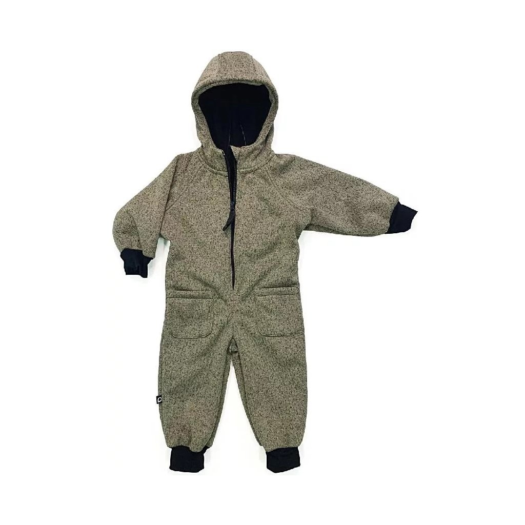 Praktická kombinéza je výborným řešením do nepříznivého počasí - chrání před chladem a větrem. Je vyrobená z úpletového softshellu, který zajišťuje stálé tělesné klima. Díky nápletům na konci rukávů a nohavic se může kombinéza využívat i když je trochu delší - děťátko jí tedy unosí déle.