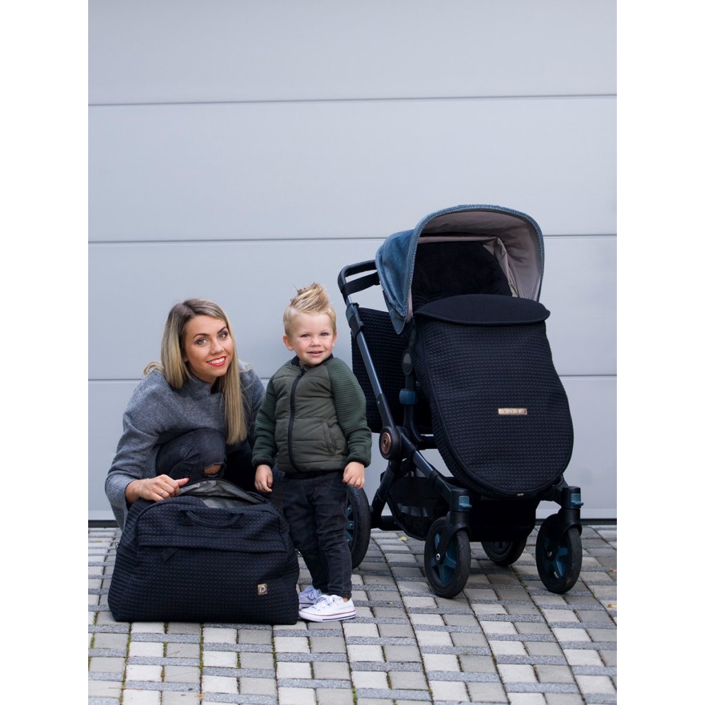 Nánožník je vyroben z voděodolného materiálu, je doplněn o speciální podšívku, díky které neustále cirkuluje vzduch a odvádí tak vlhkost pryč od dítěte. Přichycení nánožníku ke kočárku je řešeno popruhy a poutky ve třech úrovních, do kočárku tak nefouká. Další výhodou je klopa v horní části, která po zvednutí chrání miminko před větrem. Nánožník je univerzální a tudíž vhodný pro všechny kočárky.