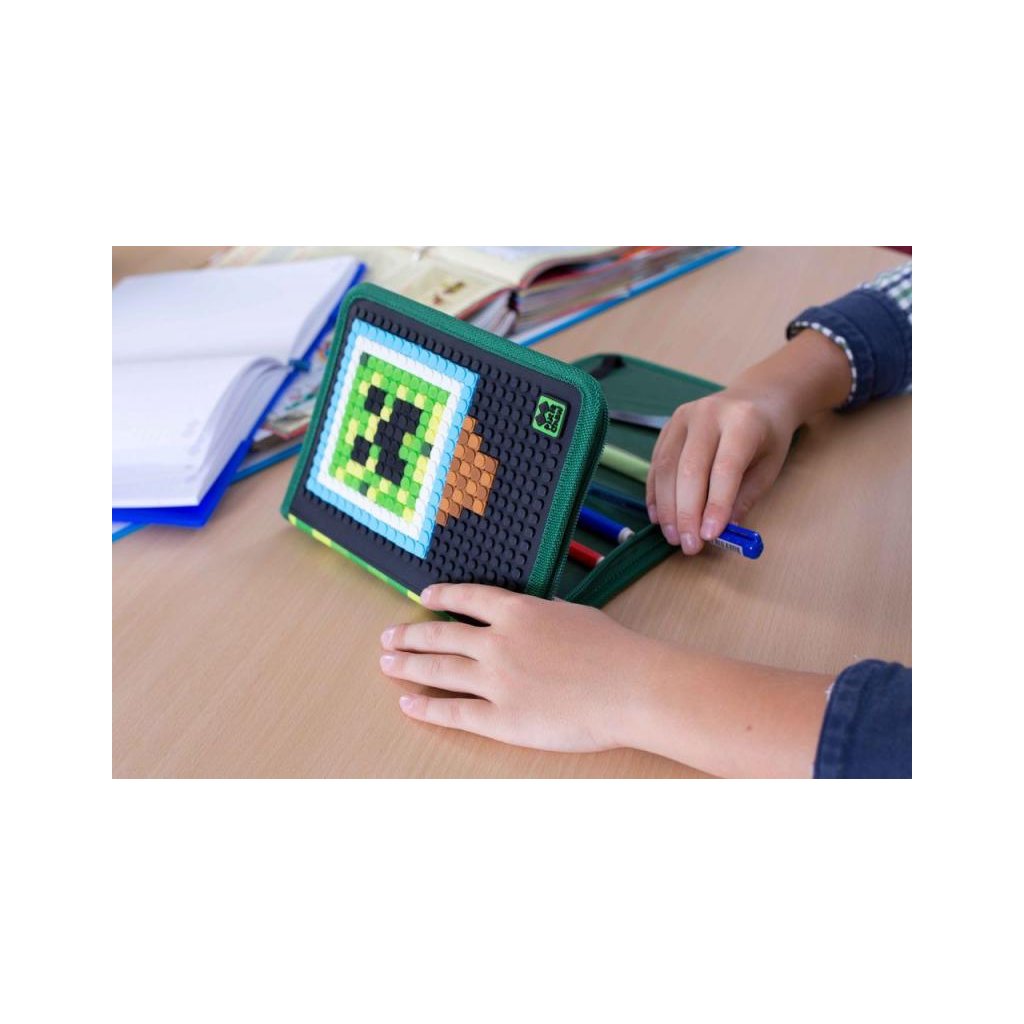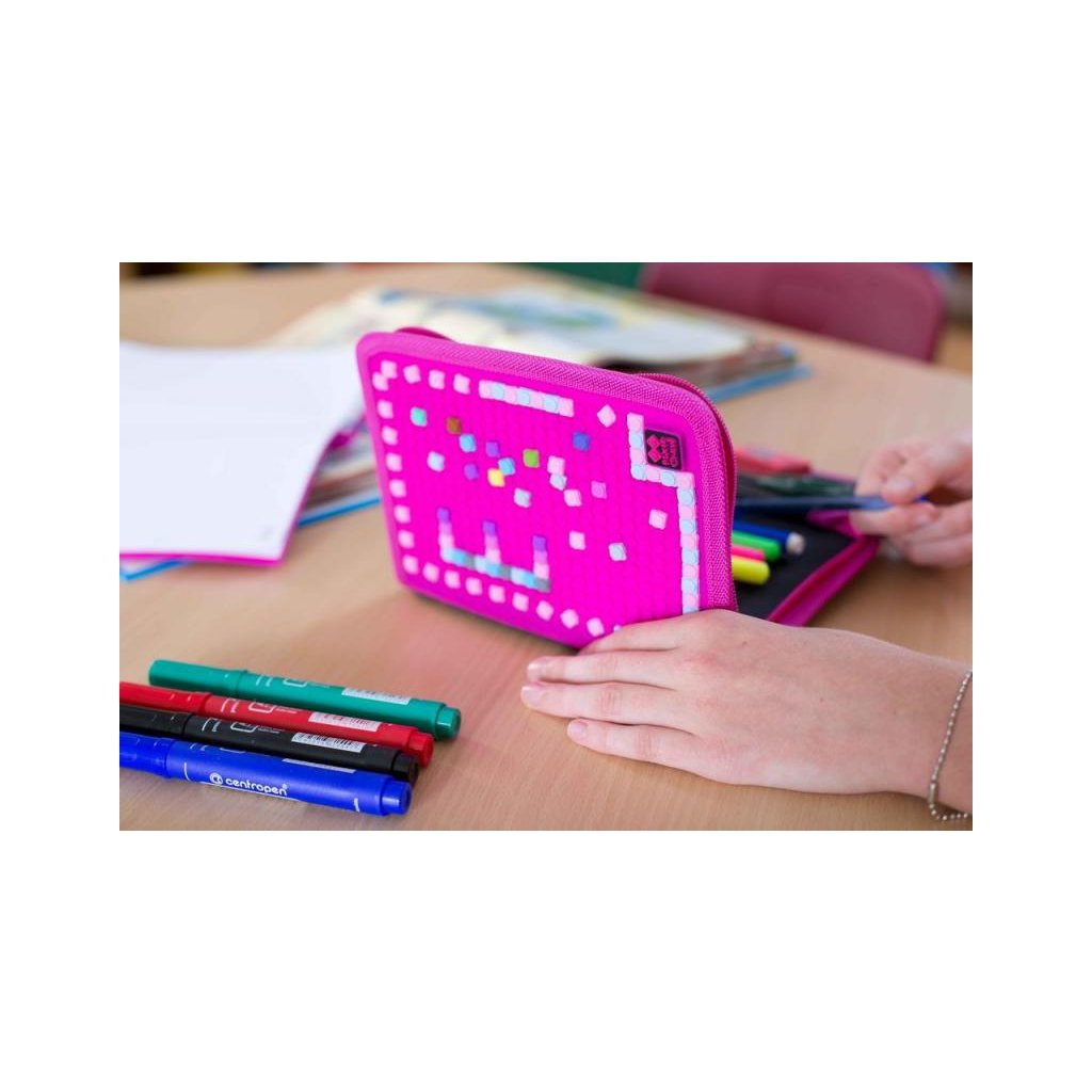 Barevné penály s patentovanou silikonovou deskou o velikosti 24 x16 bodů. Máte tedy 375 pozic pro své nápady. Penál je vyroben z polyesteru. Zapínání je na zip. Uvnitř je dostatek místa na drobné věci, které potřebuje mít každý školák vždy u sebe. Ke každému penálu dostanete zdarma 100 malých pixelů. Pro další tvorbu obrázků nabízíme k dokoupení malé pixely v mnoha barvách. Dítě může vzhled penálu měnit kdykoliv se mu zachce a to je to nejlepší!
