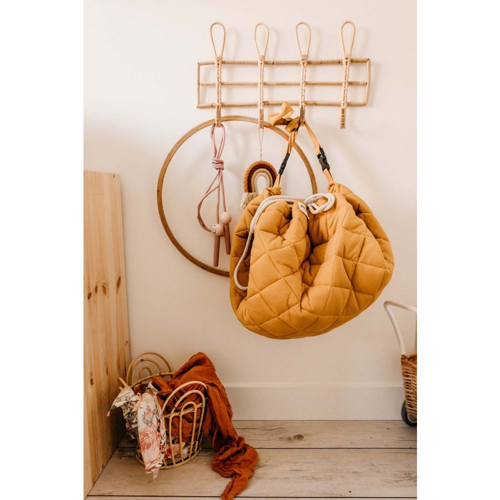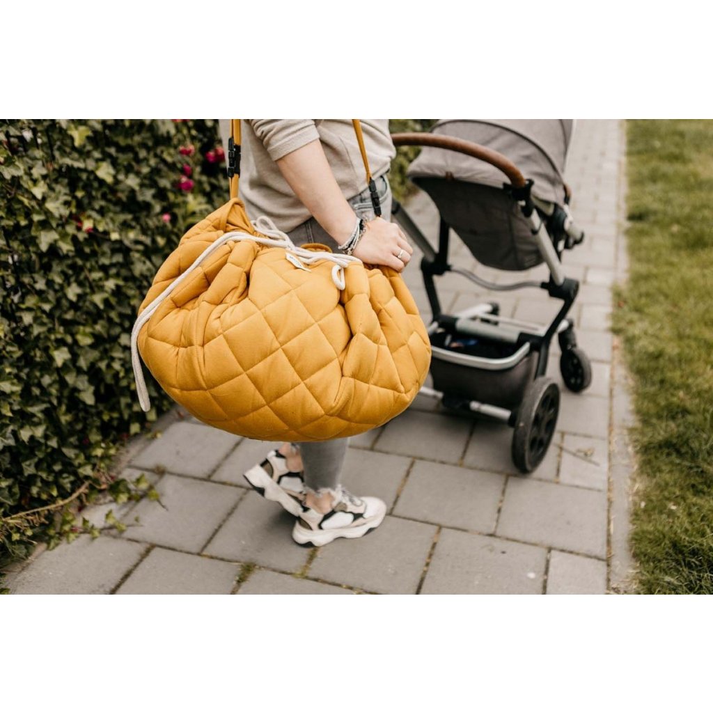 Objevte tuto organickou funkční dětskou podložku 3v1, úložnou tašku a tašku na pleny. Tato organická dětská podložka Chai Tea Mustard GOTS je příjemným odstínem pro každý domov. Tato podložka na hraní a taška na pleny jsou tak praktické a funkční pro každodenní používání. Nastavitelný a odnímatelný ramenní popruh zaručí skvělý komfort nebo jej jen zavěste na kočárek a můžete vyrazit! Vyzkoušejte a zamilujte si tuto jedinečnou hrací podložku.