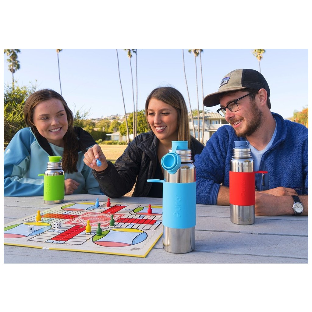 Balení obsahuje: nerezovou láhev s vakuovou termo-izolací 650 ml, nerezovou objímku, silikonový sportovní uzávěr Pura Big Mouth®, silikonový návlek.