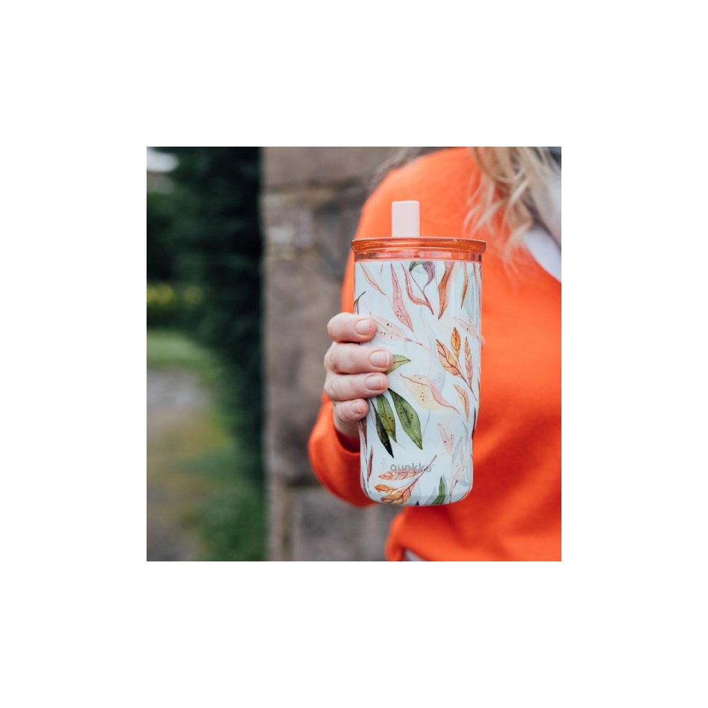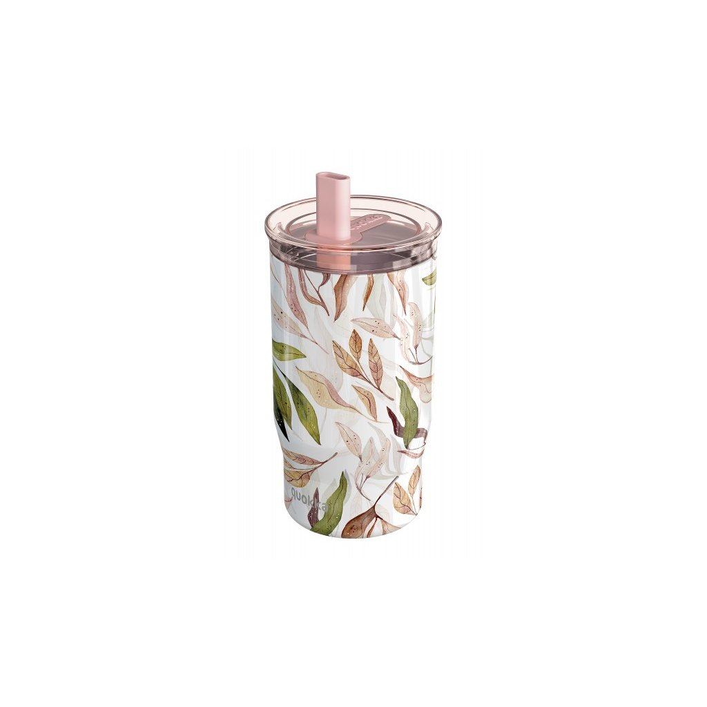 QUOKKA Nerezový termohrnek s brčkem Mist Falling Leaves 720 ml
