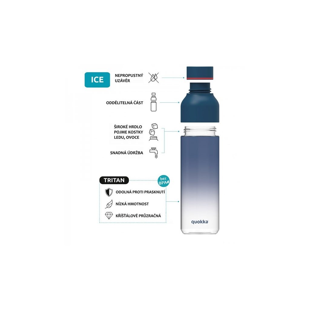Láhev Quokka Ice s dvojitým otevíráním umožňuje vložení kostek ledu či kousků ovoce a zároveň se snadno čistí. 100% těsnicí, šroubovací uzávěry chrání obsah láhve před vylitím.