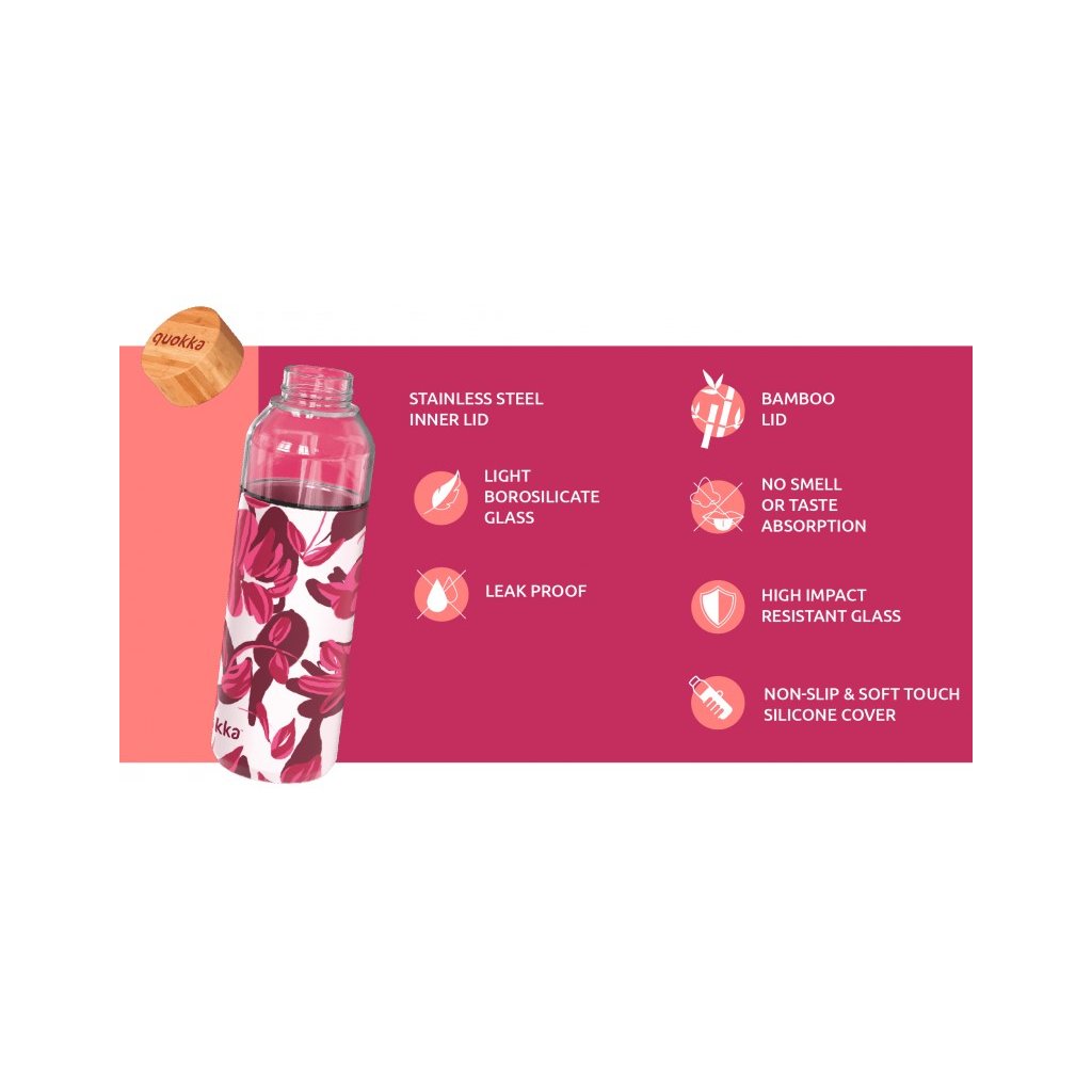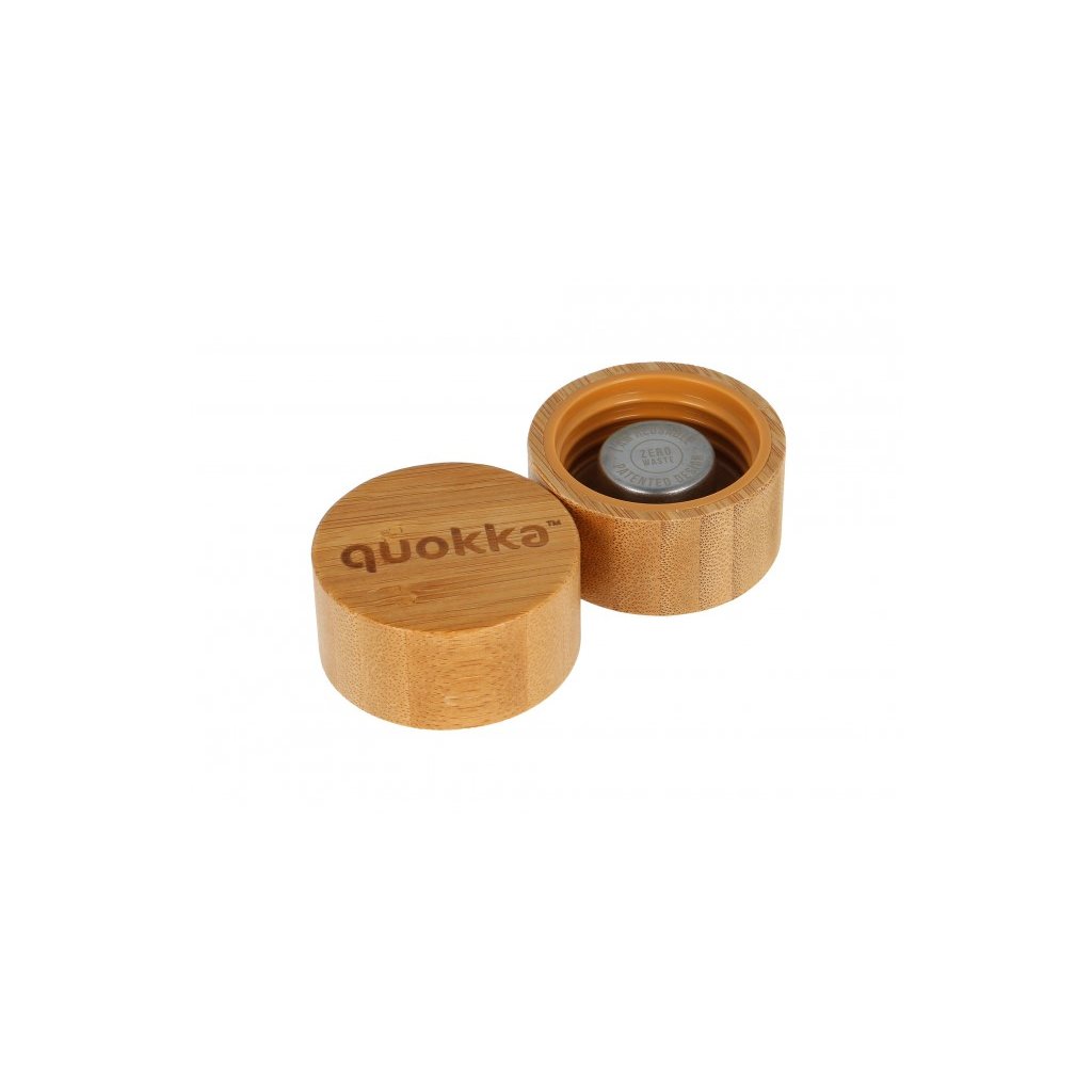 Skleněná láhev Quokka Flow je vybavena spolehlivým těsnicím víčkem z bambusu a nerezu. Protiskluzový silikonový návlek usnadňuje a zpříjemňuje držení hrnku.