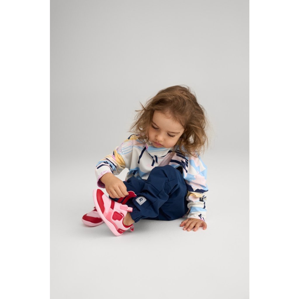 Barefootové dětské tenisky s voděodolnou membránou Reimatec Reima Tepastelu jsou určené pro jarní a podzimní sezonu. Tento typ obuvi skvěle pečuje o dětské nohy. Svršek je dostatečně široký, aby nedocházelo k deformacím prstů. Podešev je rovná, proto mají děti při chůzi přirozenější postoj. Podešev je rovněž tenká a pružná, což umožňuje lepší vnímání terénu a aktivaci svalů na chodidle. Boty mají podšívku ze síťoviny, vyjímatelné vložky a na nártech se zapínají na suché zipy.